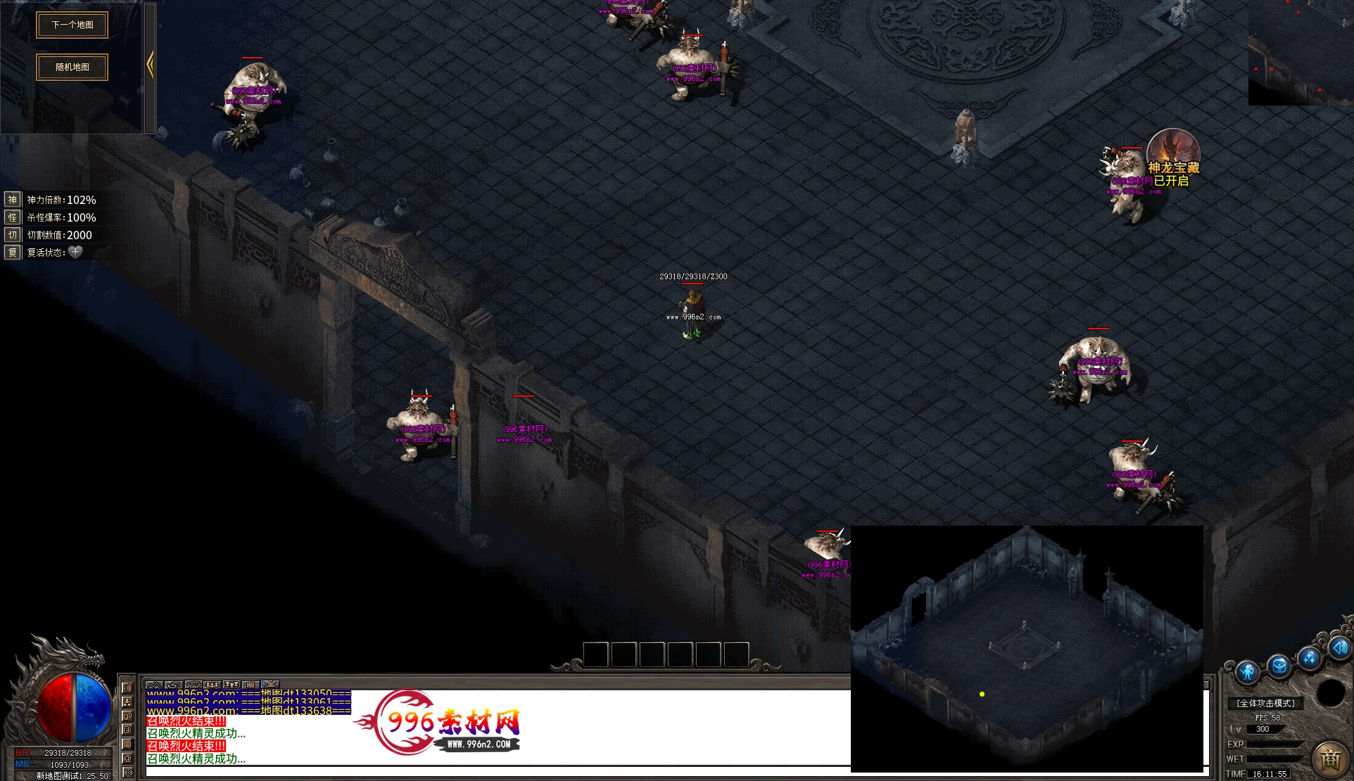 上传之前素材已经经过多次压缩. 实际的素材效果要比下面的图片强很多倍. 996素材下载后可以直接调用。跟版本的编号相同,修改一下就可以了, 大大节省了GM的用图片转换成996素材的时间 说明:本站所有素材全是从用996引擎游戏中调整好坐标后截图.看到是什么样的,安装到自己版本中就是什么样的.