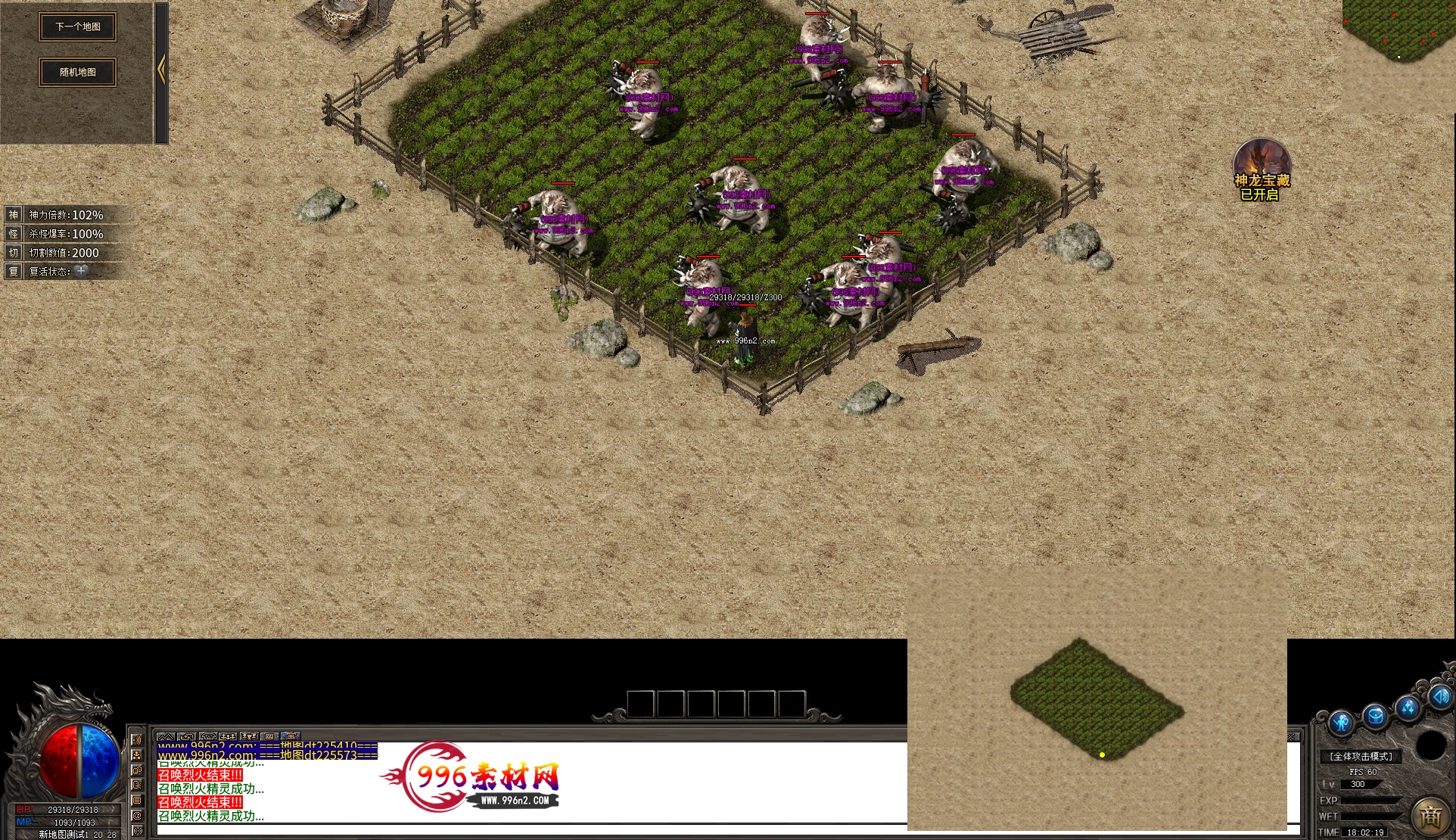上传之前素材已经经过多次压缩. 实际的素材效果要比下面的图片强很多倍. 996素材下载后可以直接调用。跟版本的编号相同,修改一下就可以了, 大大节省了GM的用图片转换成996素材的时间 说明:本站所有素材全是从用996引擎游戏中调整好坐标后截图.看到是什么样的,安装到自己版本中就是什么样的.