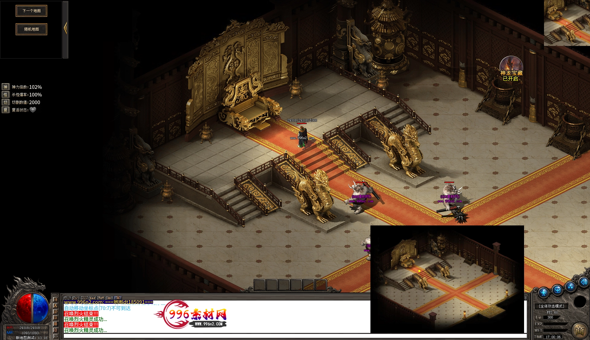 上传之前素材已经经过多次压缩. 实际的素材效果要比下面的图片强很多倍. 996素材下载后可以直接调用。跟版本的编号相同,修改一下就可以了, 大大节省了GM的用图片转换成996素材的时间 说明:本站所有素材全是从用996引擎游戏中调整好坐标后截图.看到是什么样的,安装到自己版本中就是什么样的.
