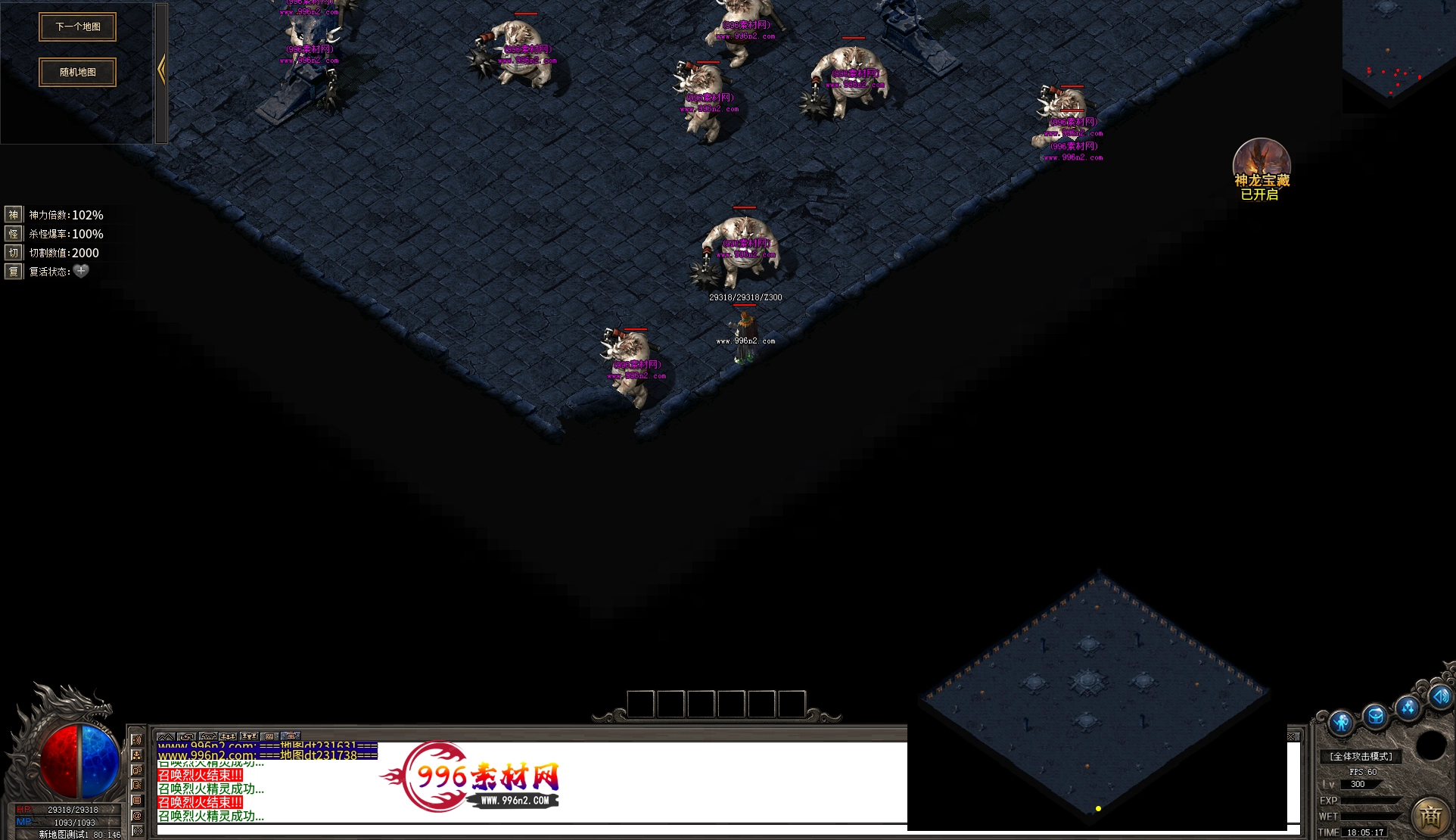 上传之前素材已经经过多次压缩. 实际的素材效果要比下面的图片强很多倍. 996素材下载后可以直接调用。跟版本的编号相同,修改一下就可以了, 大大节省了GM的用图片转换成996素材的时间 说明:本站所有素材全是从用996引擎游戏中调整好坐标后截图.看到是什么样的,安装到自己版本中就是什么样的.