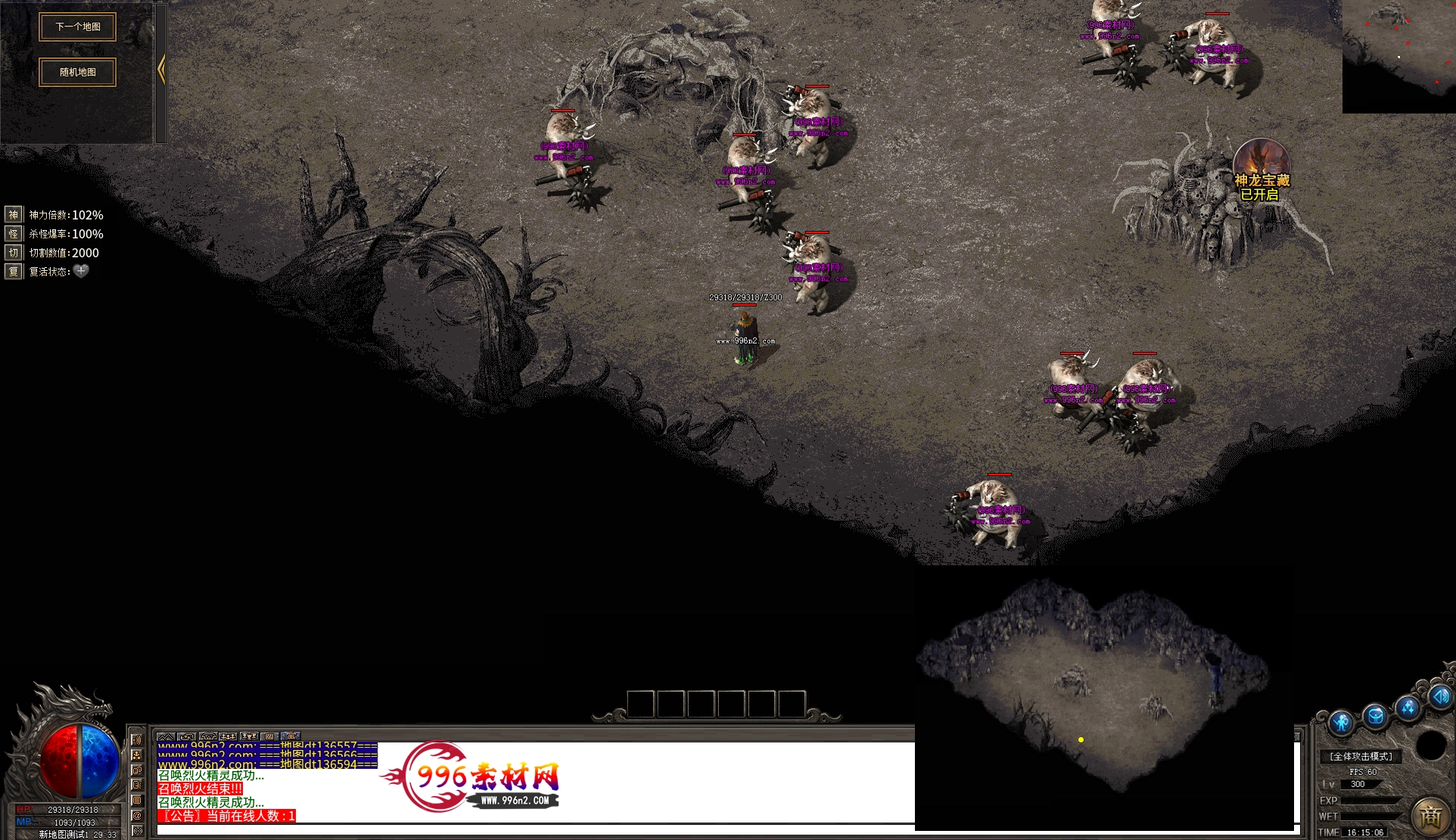 上传之前素材已经经过多次压缩. 实际的素材效果要比下面的图片强很多倍. 996素材下载后可以直接调用。跟版本的编号相同,修改一下就可以了, 大大节省了GM的用图片转换成996素材的时间 说明:本站所有素材全是从用996引擎游戏中调整好坐标后截图.看到是什么样的,安装到自己版本中就是什么样的.