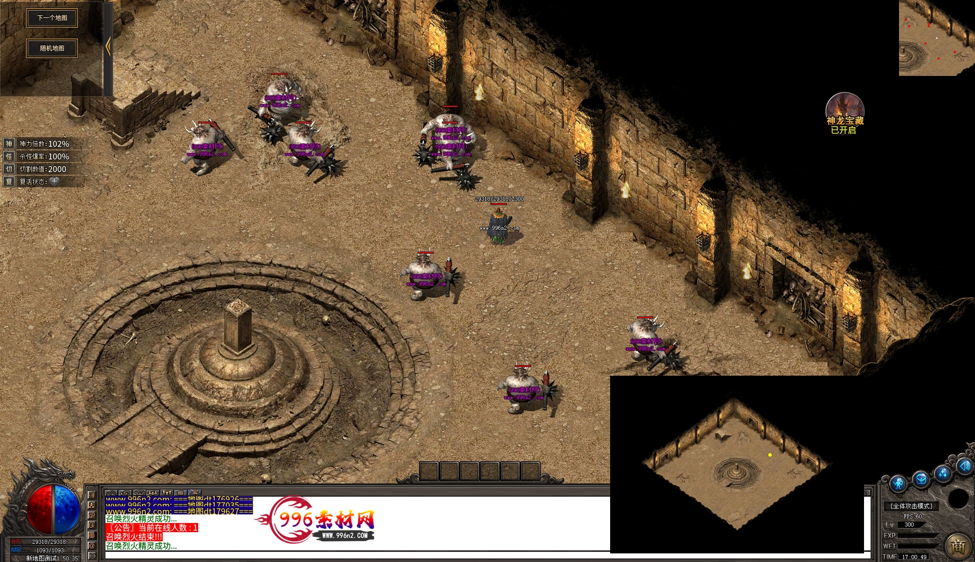 上传之前素材已经经过多次压缩. 实际的素材效果要比下面的图片强很多倍. 996素材下载后可以直接调用。跟版本的编号相同,修改一下就可以了, 大大节省了GM的用图片转换成996素材的时间 说明:本站所有素材全是从用996引擎游戏中调整好坐标后截图.看到是什么样的,安装到自己版本中就是什么样的.