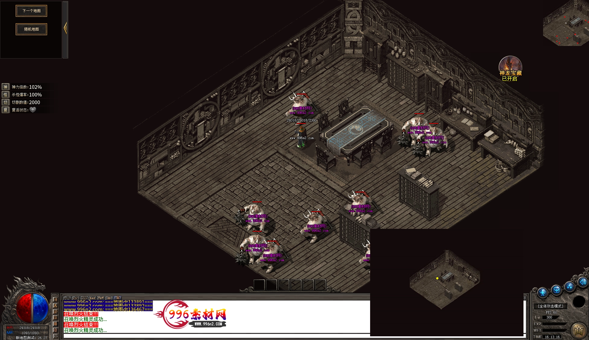 上传之前素材已经经过多次压缩. 实际的素材效果要比下面的图片强很多倍. 996素材下载后可以直接调用。跟版本的编号相同,修改一下就可以了, 大大节省了GM的用图片转换成996素材的时间 说明:本站所有素材全是从用996引擎游戏中调整好坐标后截图.看到是什么样的,安装到自己版本中就是什么样的.