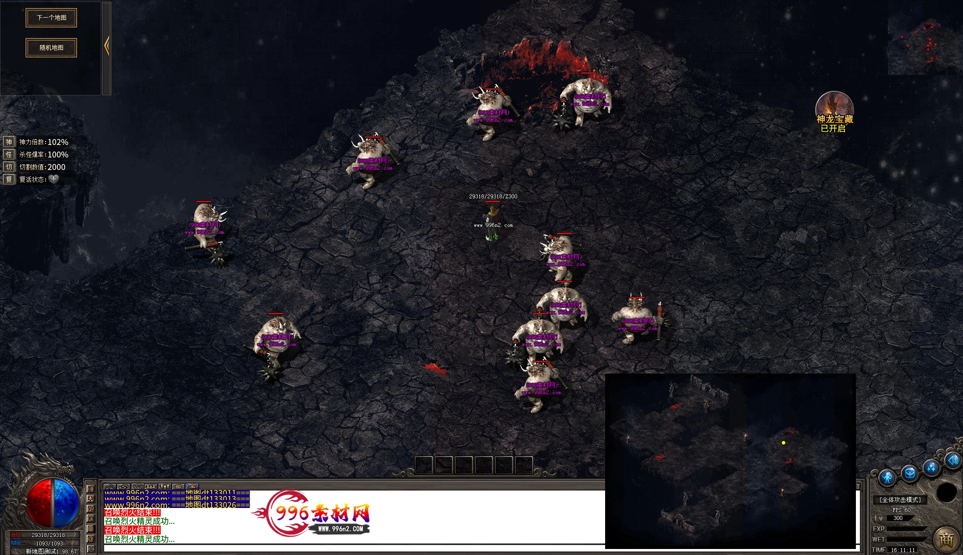 上传之前素材已经经过多次压缩. 实际的素材效果要比下面的图片强很多倍. 996素材下载后可以直接调用。跟版本的编号相同,修改一下就可以了, 大大节省了GM的用图片转换成996素材的时间 说明:本站所有素材全是从用996引擎游戏中调整好坐标后截图.看到是什么样的,安装到自己版本中就是什么样的.