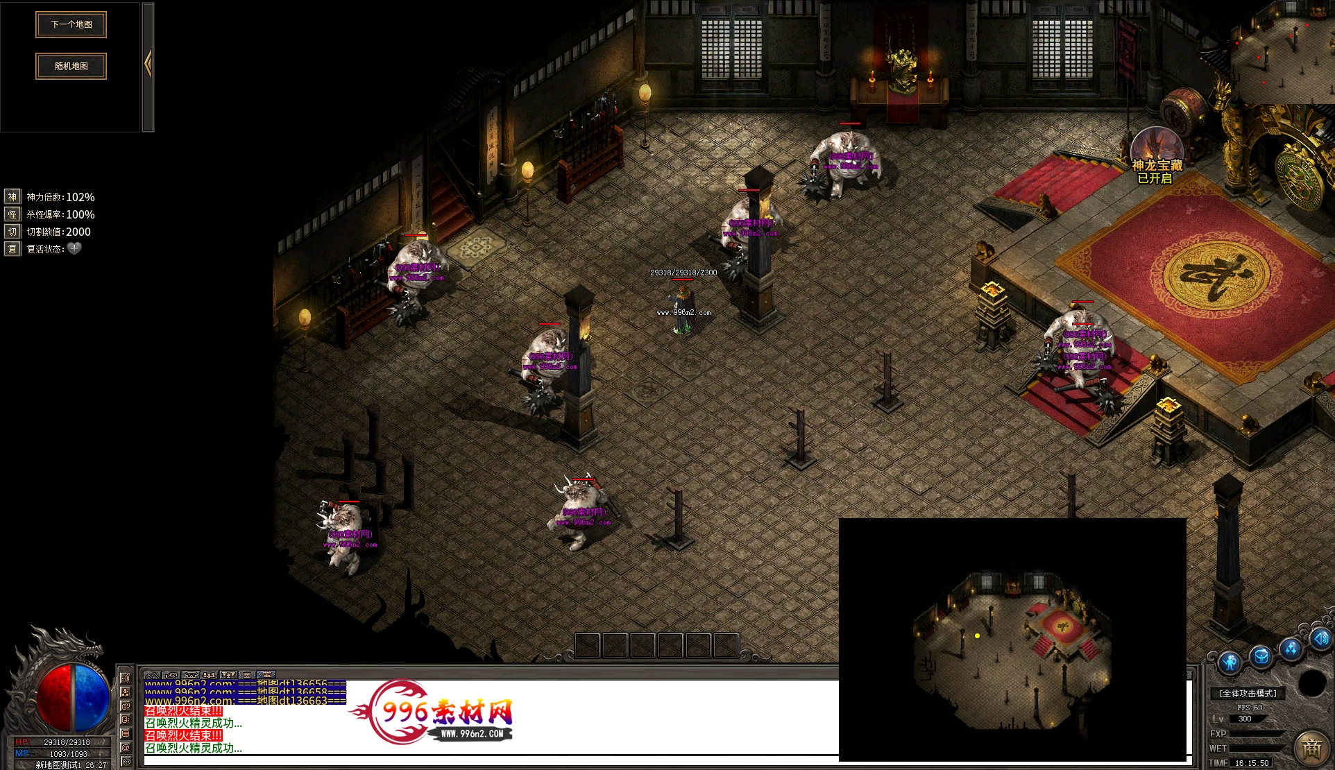 上传之前素材已经经过多次压缩. 实际的素材效果要比下面的图片强很多倍. 996素材下载后可以直接调用。跟版本的编号相同,修改一下就可以了, 大大节省了GM的用图片转换成996素材的时间 说明:本站所有素材全是从用996引擎游戏中调整好坐标后截图.看到是什么样的,安装到自己版本中就是什么样的.