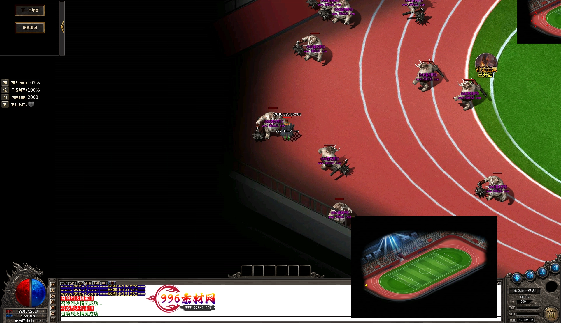 上传之前素材已经经过多次压缩. 实际的素材效果要比下面的图片强很多倍. 996素材下载后可以直接调用。跟版本的编号相同,修改一下就可以了, 大大节省了GM的用图片转换成996素材的时间 说明:本站所有素材全是从用996引擎游戏中调整好坐标后截图.看到是什么样的,安装到自己版本中就是什么样的.