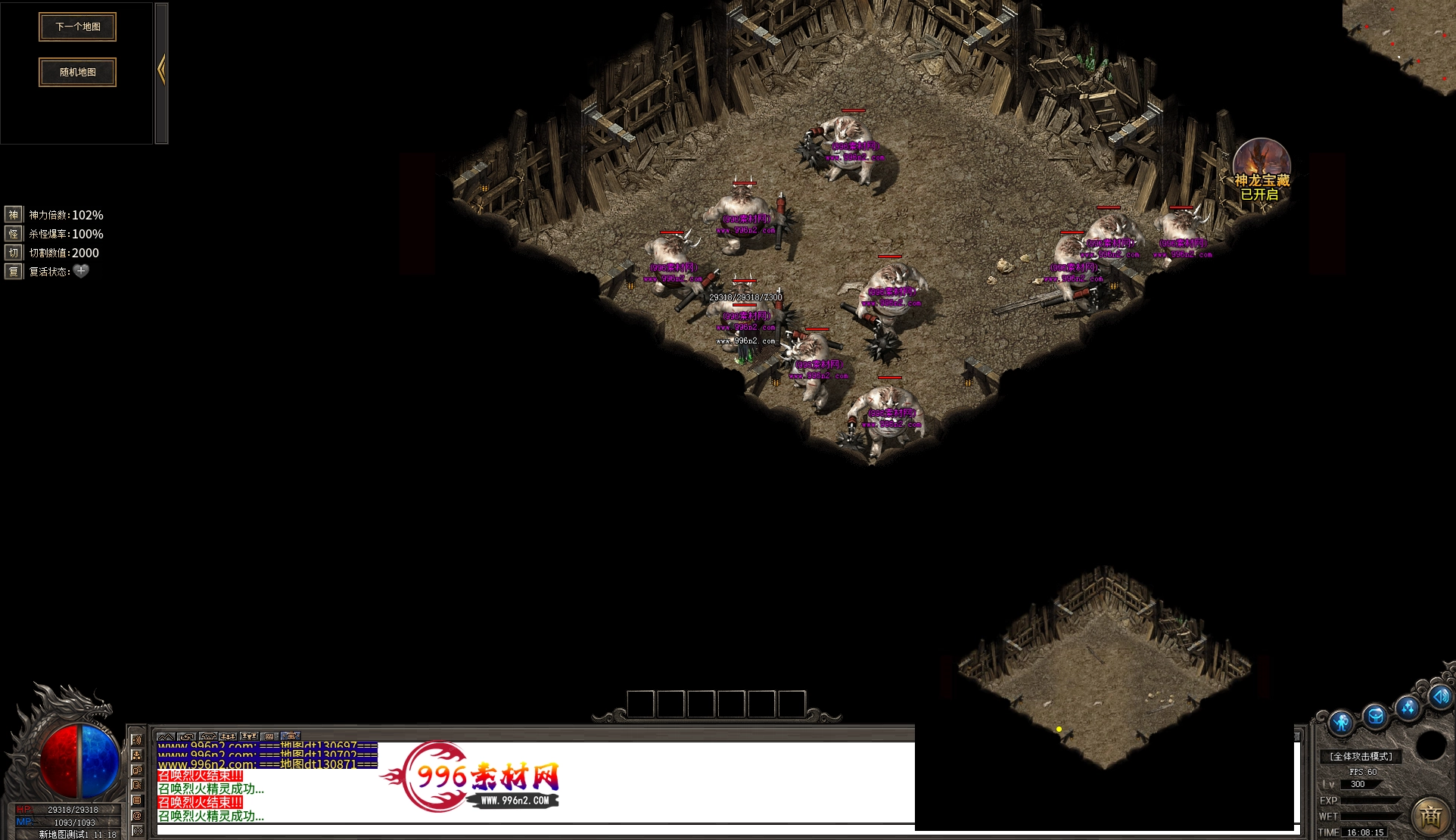 上传之前素材已经经过多次压缩. 实际的素材效果要比下面的图片强很多倍. 996素材下载后可以直接调用。跟版本的编号相同,修改一下就可以了, 大大节省了GM的用图片转换成996素材的时间 说明:本站所有素材全是从用996引擎游戏中调整好坐标后截图.看到是什么样的,安装到自己版本中就是什么样的.