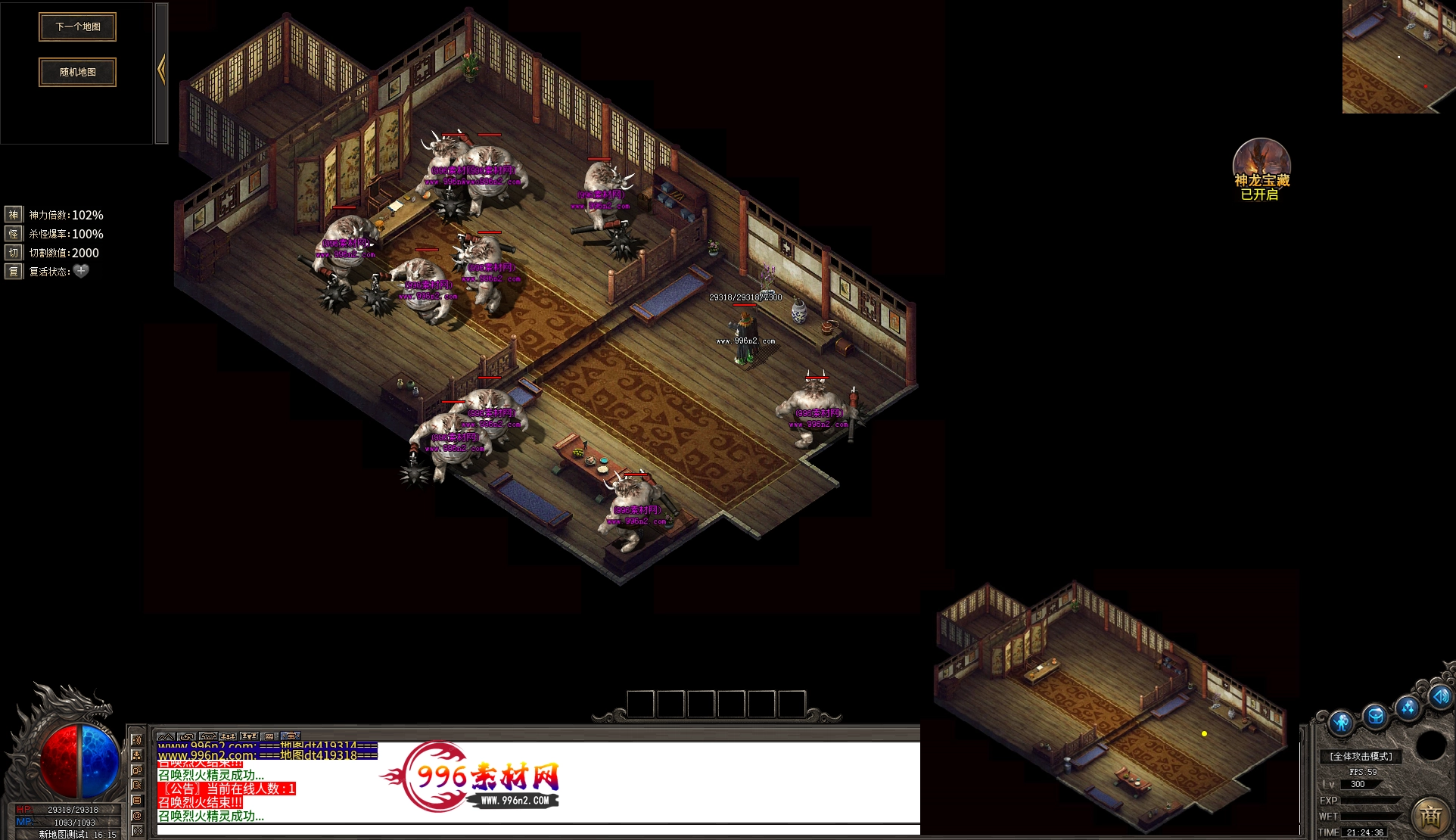 上传之前素材已经经过多次压缩. 实际的素材效果要比下面的图片强很多倍. 996素材下载后可以直接调用。跟版本的编号相同,修改一下就可以了, 大大节省了GM的用图片转换成996素材的时间 说明:本站所有素材全是从用996引擎游戏中调整好坐标后截图.看到是什么样的,安装到自己版本中就是什么样的.