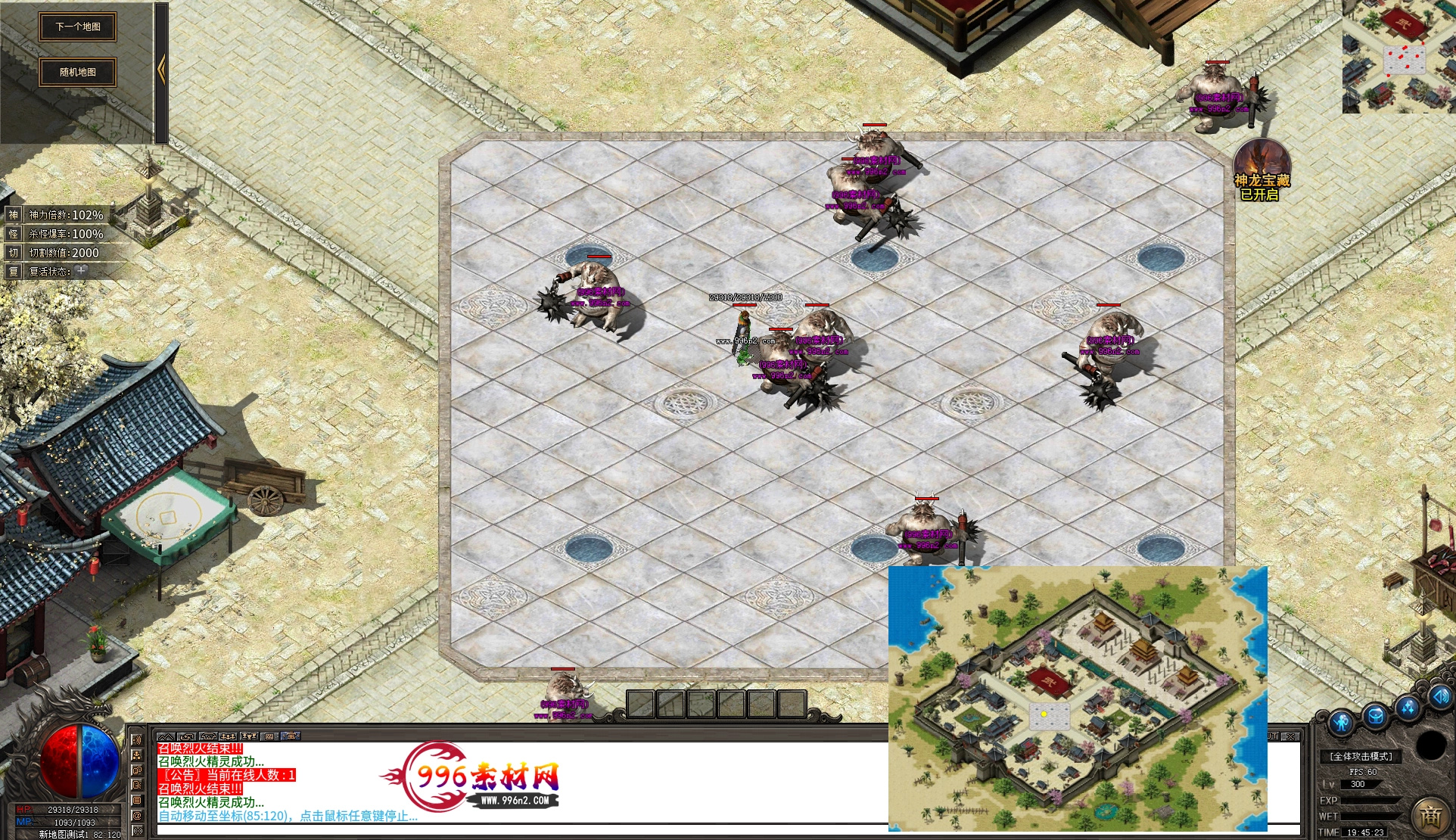上传之前素材已经经过多次压缩. 实际的素材效果要比下面的图片强很多倍. 996素材下载后可以直接调用。跟版本的编号相同,修改一下就可以了, 大大节省了GM的用图片转换成996素材的时间 说明:本站所有素材全是从用996引擎游戏中调整好坐标后截图.看到是什么样的,安装到自己版本中就是什么样的.