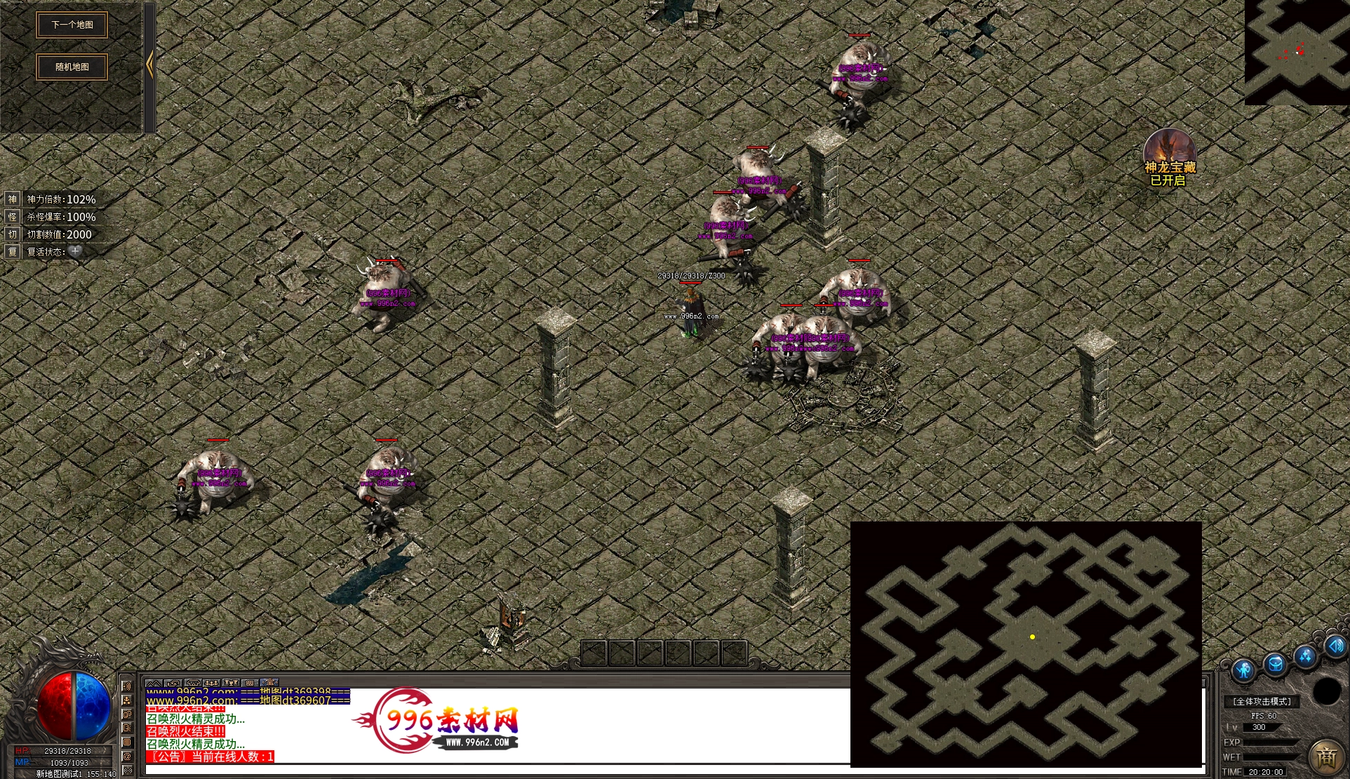 上传之前素材已经经过多次压缩. 实际的素材效果要比下面的图片强很多倍. 996素材下载后可以直接调用。跟版本的编号相同,修改一下就可以了, 大大节省了GM的用图片转换成996素材的时间 说明:本站所有素材全是从用996引擎游戏中调整好坐标后截图.看到是什么样的,安装到自己版本中就是什么样的.