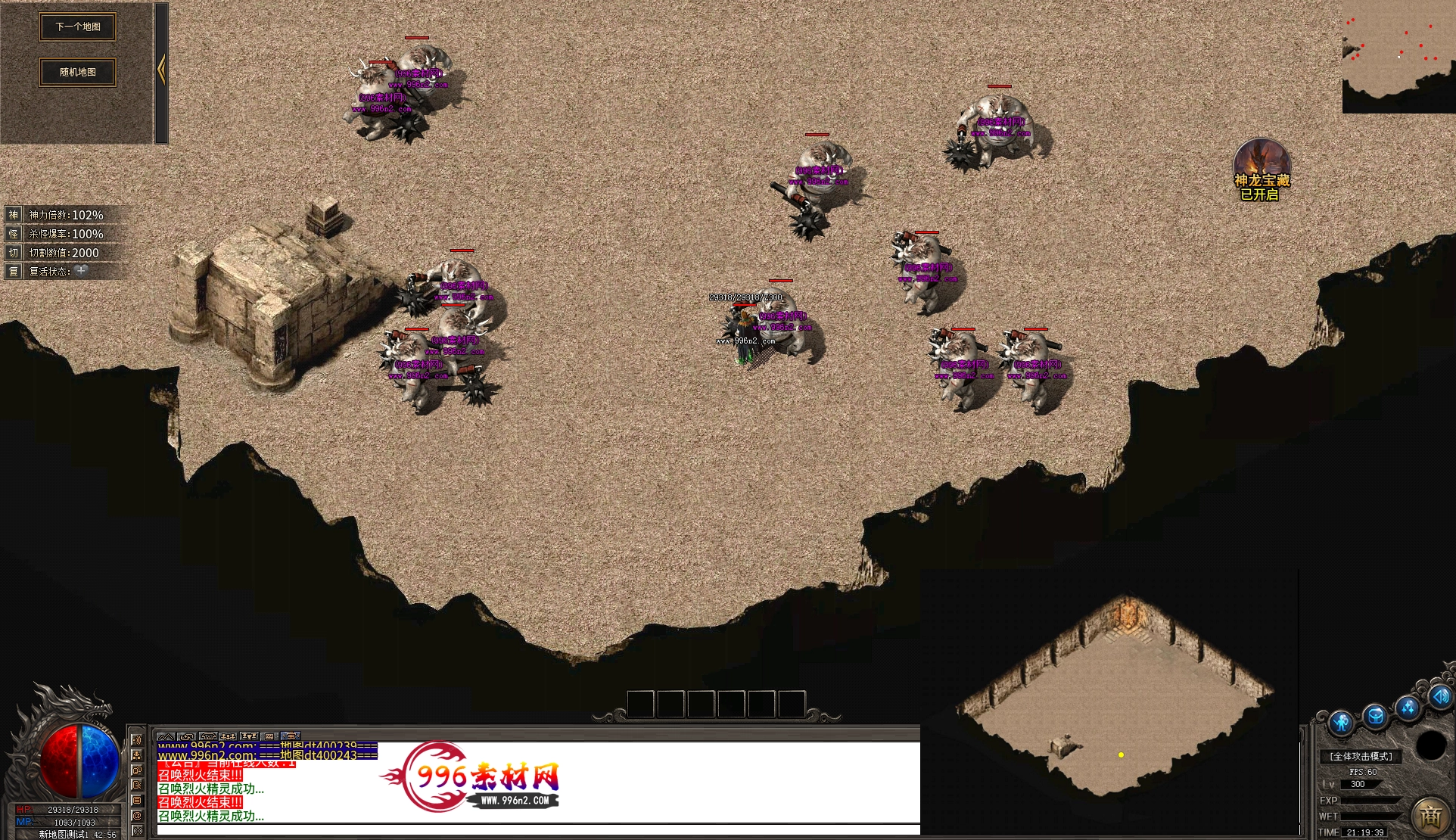 上传之前素材已经经过多次压缩. 实际的素材效果要比下面的图片强很多倍. 996素材下载后可以直接调用。跟版本的编号相同,修改一下就可以了, 大大节省了GM的用图片转换成996素材的时间 说明:本站所有素材全是从用996引擎游戏中调整好坐标后截图.看到是什么样的,安装到自己版本中就是什么样的.