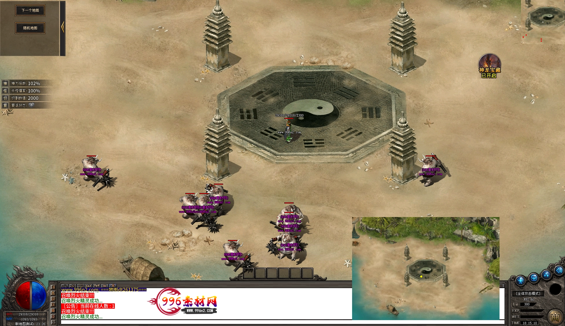 上传之前素材已经经过多次压缩. 实际的素材效果要比下面的图片强很多倍. 996素材下载后可以直接调用。跟版本的编号相同,修改一下就可以了, 大大节省了GM的用图片转换成996素材的时间 说明:本站所有素材全是从用996引擎游戏中调整好坐标后截图.看到是什么样的,安装到自己版本中就是什么样的.