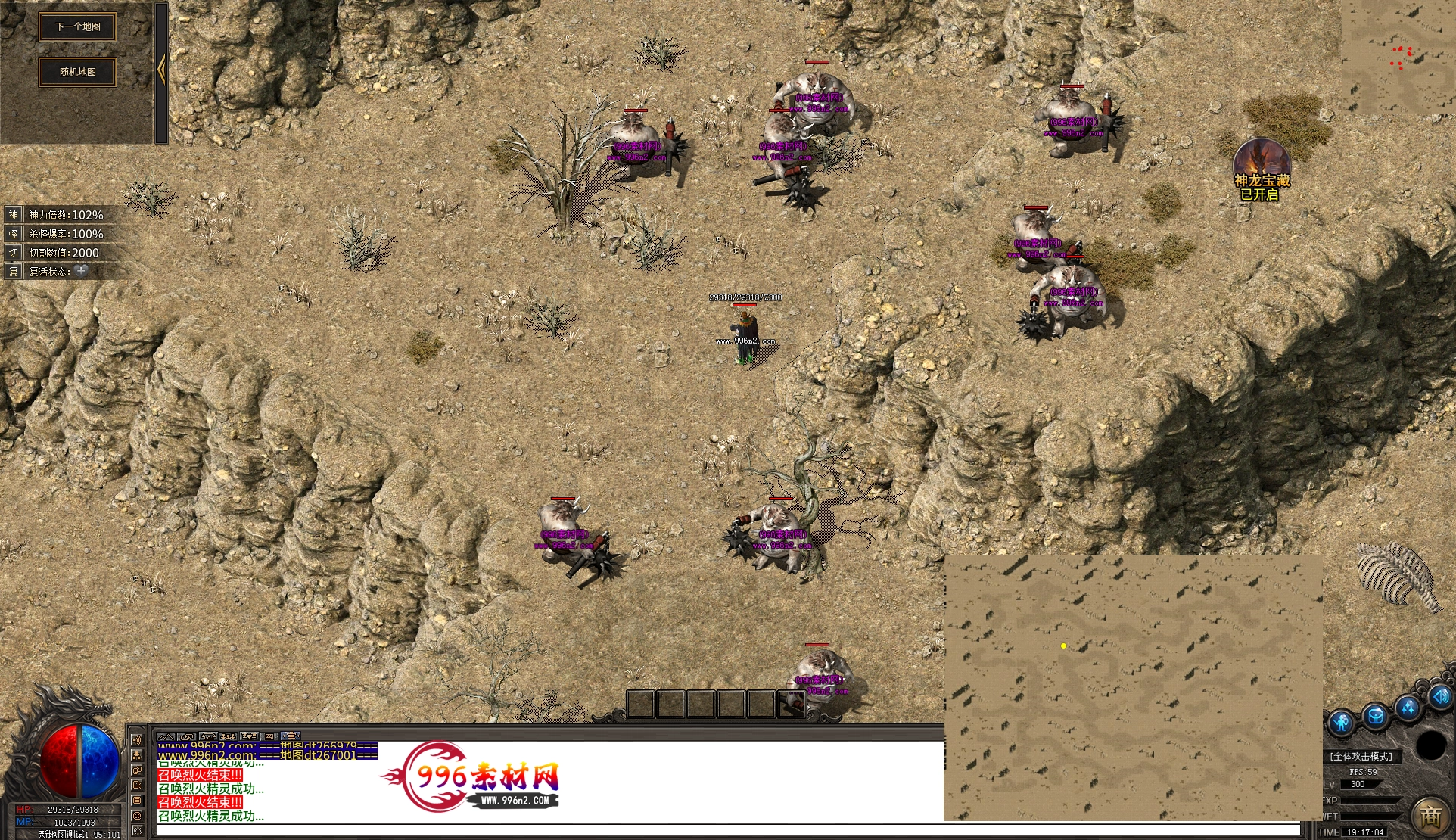 上传之前素材已经经过多次压缩. 实际的素材效果要比下面的图片强很多倍. 996素材下载后可以直接调用。跟版本的编号相同,修改一下就可以了, 大大节省了GM的用图片转换成996素材的时间 说明:本站所有素材全是从用996引擎游戏中调整好坐标后截图.看到是什么样的,安装到自己版本中就是什么样的.