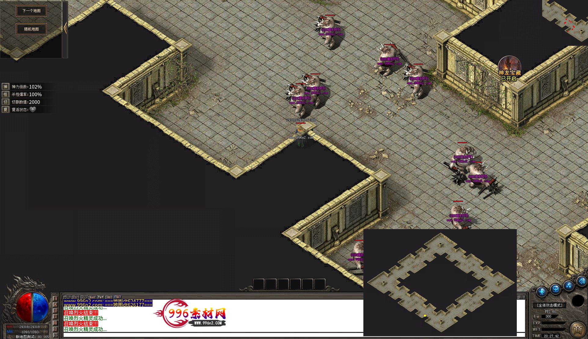 上传之前素材已经经过多次压缩. 实际的素材效果要比下面的图片强很多倍. 996素材下载后可以直接调用。跟版本的编号相同,修改一下就可以了, 大大节省了GM的用图片转换成996素材的时间 说明:本站所有素材全是从用996引擎游戏中调整好坐标后截图.看到是什么样的,安装到自己版本中就是什么样的.