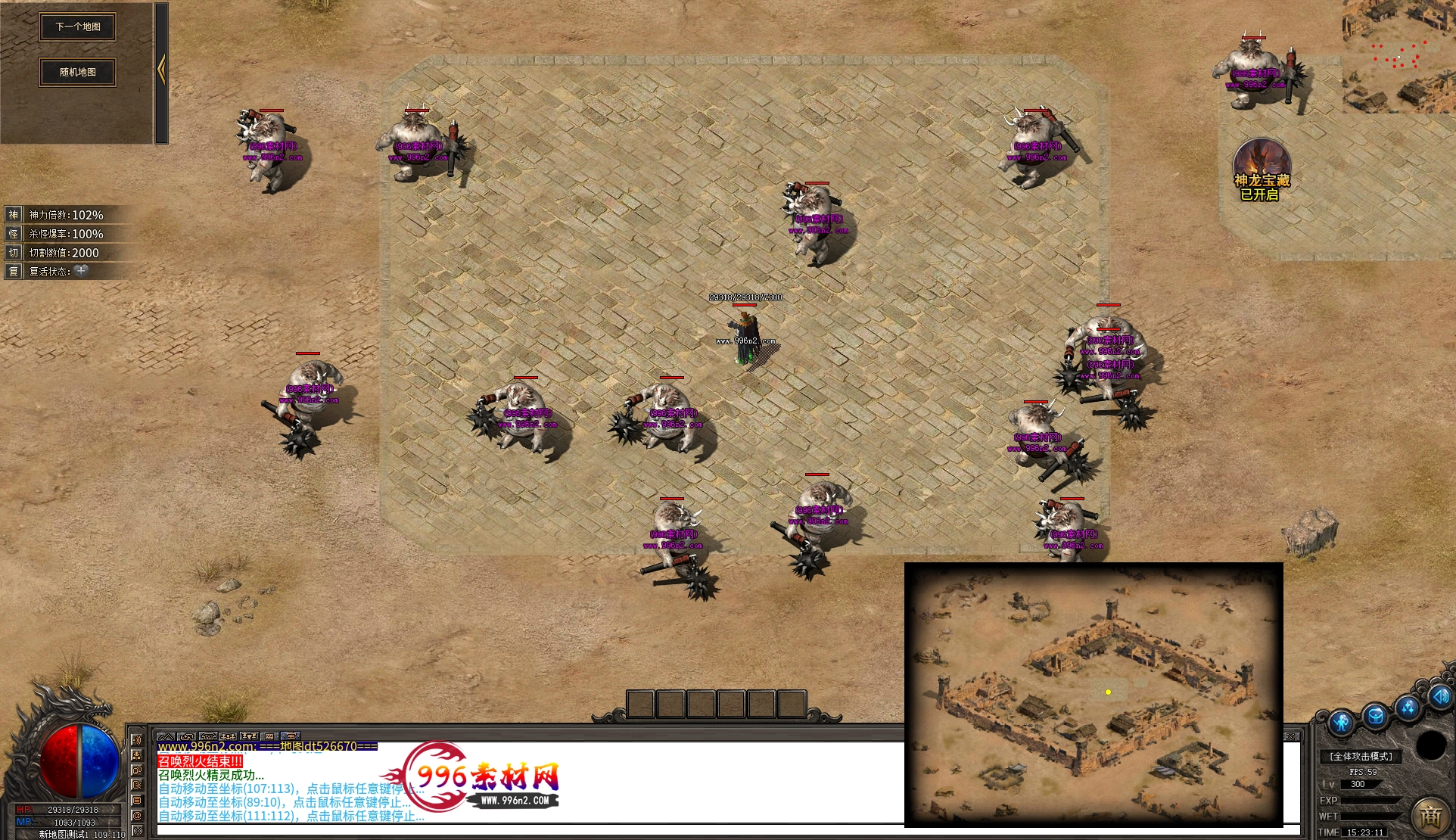 上传之前素材已经经过多次压缩. 实际的素材效果要比下面的图片强很多倍. 996素材下载后可以直接调用。跟版本的编号相同,修改一下就可以了, 大大节省了GM的用图片转换成996素材的时间 说明:本站所有素材全是从用996引擎游戏中调整好坐标后截图.看到是什么样的,安装到自己版本中就是什么样的.