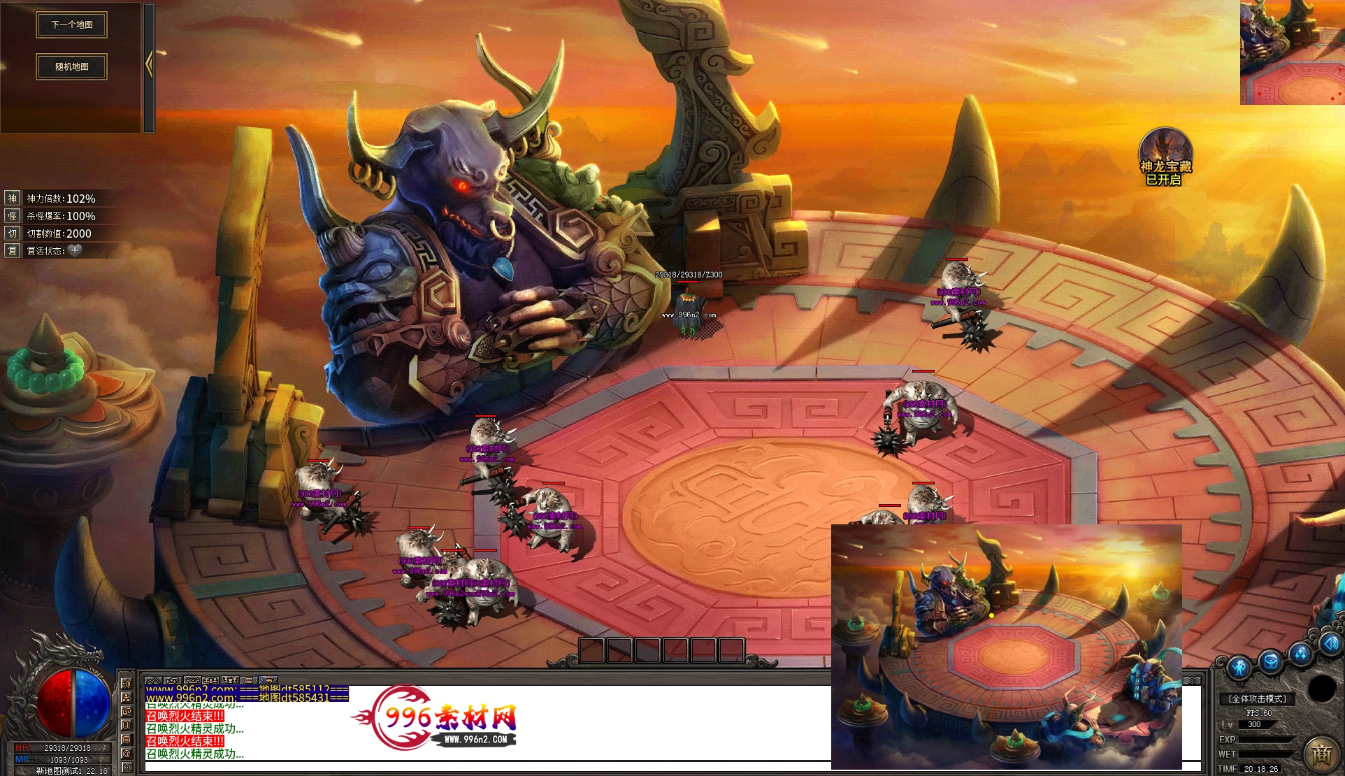 上传之前素材已经经过多次压缩. 实际的素材效果要比下面的图片强很多倍. 996素材下载后可以直接调用。跟版本的编号相同,修改一下就可以了, 大大节省了GM的用图片转换成996素材的时间 说明:本站所有素材全是从用996引擎游戏中调整好坐标后截图.看到是什么样的,安装到自己版本中就是什么样的.