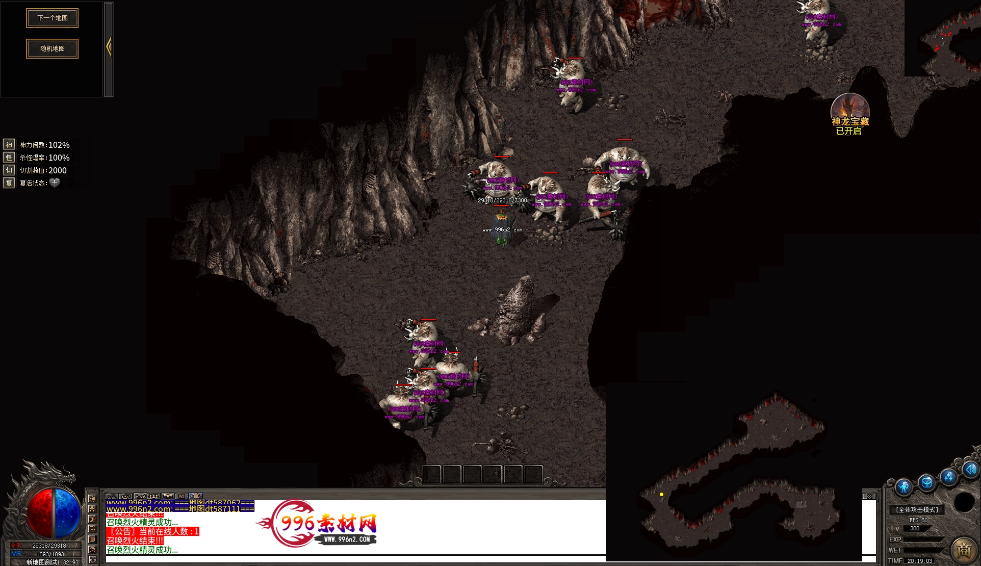上传之前素材已经经过多次压缩. 实际的素材效果要比下面的图片强很多倍. 996素材下载后可以直接调用。跟版本的编号相同,修改一下就可以了, 大大节省了GM的用图片转换成996素材的时间 说明:本站所有素材全是从用996引擎游戏中调整好坐标后截图.看到是什么样的,安装到自己版本中就是什么样的.