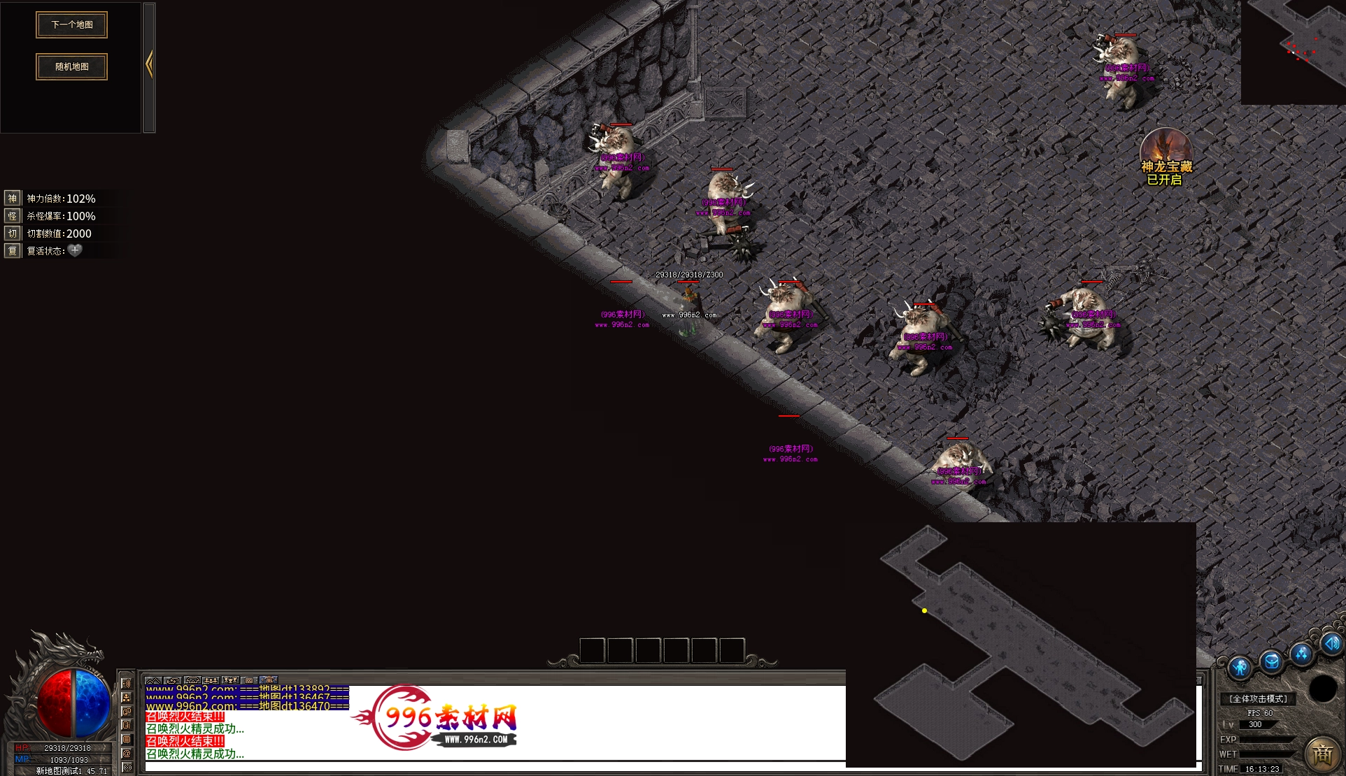 上传之前素材已经经过多次压缩. 实际的素材效果要比下面的图片强很多倍. 996素材下载后可以直接调用。跟版本的编号相同,修改一下就可以了, 大大节省了GM的用图片转换成996素材的时间 说明:本站所有素材全是从用996引擎游戏中调整好坐标后截图.看到是什么样的,安装到自己版本中就是什么样的.