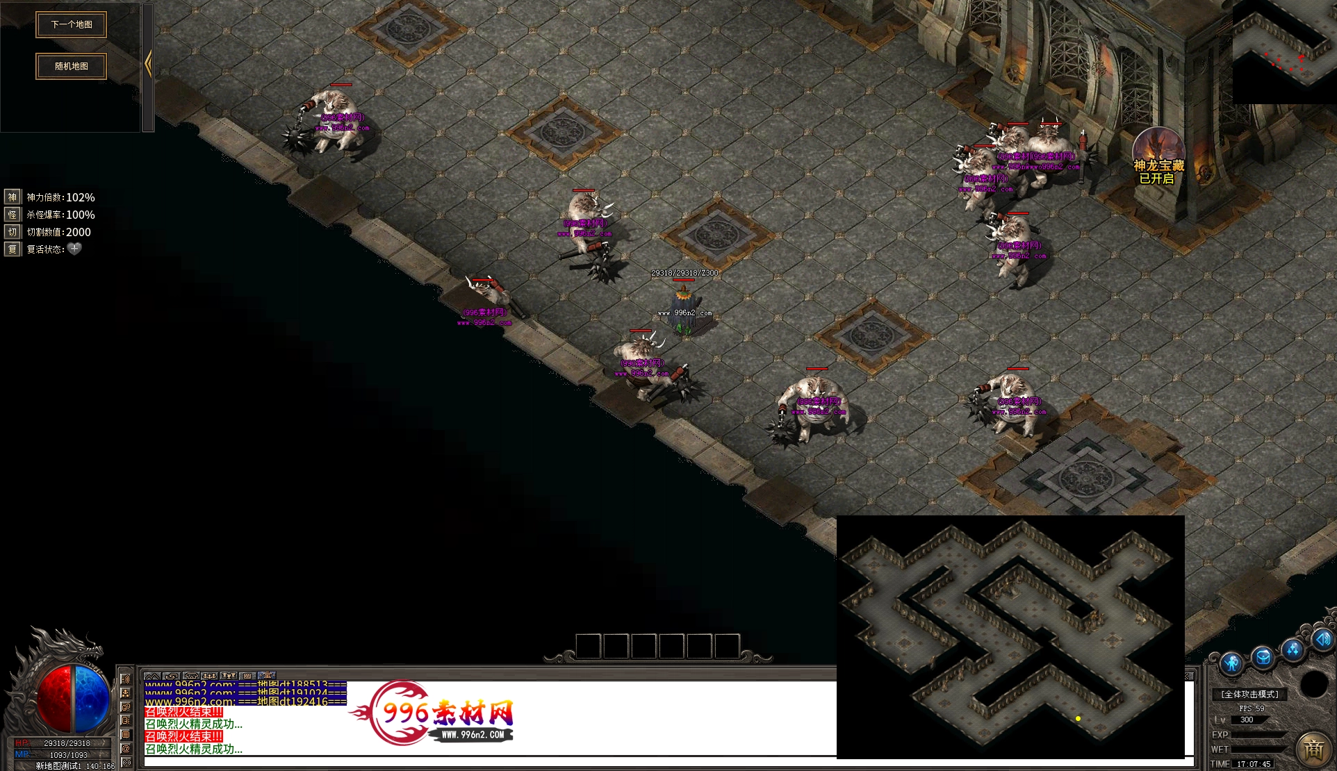 上传之前素材已经经过多次压缩. 实际的素材效果要比下面的图片强很多倍. 996素材下载后可以直接调用。跟版本的编号相同,修改一下就可以了, 大大节省了GM的用图片转换成996素材的时间 说明:本站所有素材全是从用996引擎游戏中调整好坐标后截图.看到是什么样的,安装到自己版本中就是什么样的.