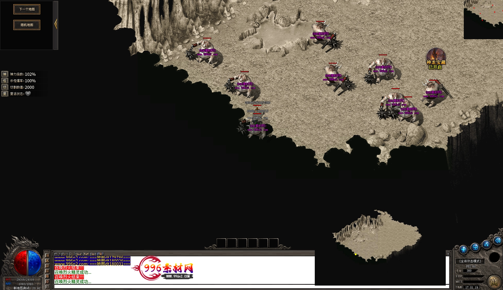 上传之前素材已经经过多次压缩. 实际的素材效果要比下面的图片强很多倍. 996素材下载后可以直接调用。跟版本的编号相同,修改一下就可以了, 大大节省了GM的用图片转换成996素材的时间 说明:本站所有素材全是从用996引擎游戏中调整好坐标后截图.看到是什么样的,安装到自己版本中就是什么样的.