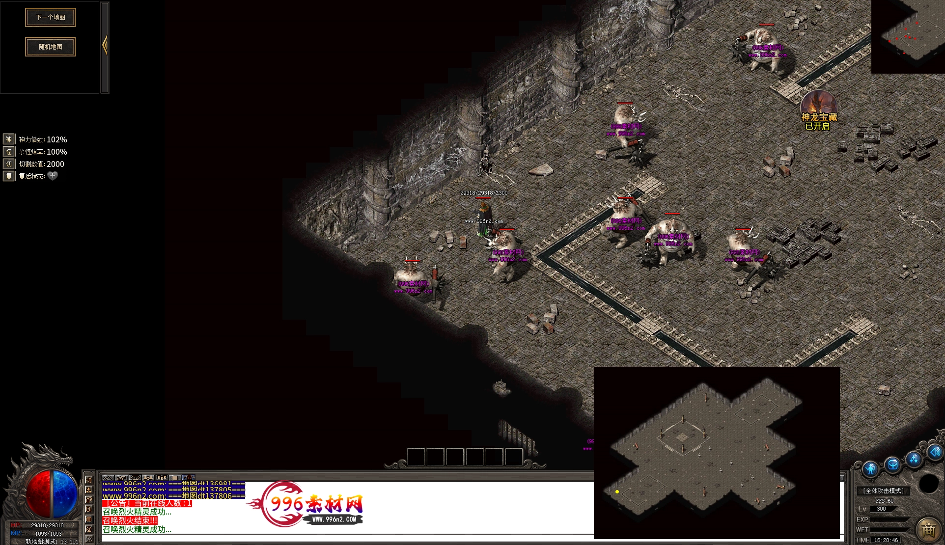 上传之前素材已经经过多次压缩. 实际的素材效果要比下面的图片强很多倍. 996素材下载后可以直接调用。跟版本的编号相同,修改一下就可以了, 大大节省了GM的用图片转换成996素材的时间 说明:本站所有素材全是从用996引擎游戏中调整好坐标后截图.看到是什么样的,安装到自己版本中就是什么样的.