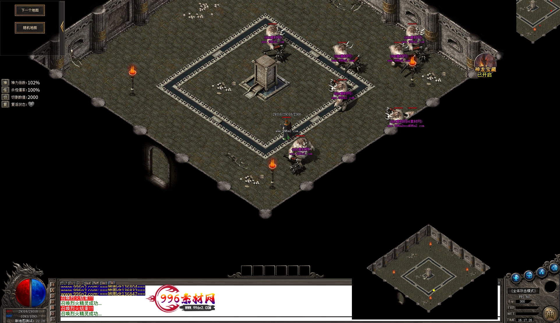 上传之前素材已经经过多次压缩. 实际的素材效果要比下面的图片强很多倍. 996素材下载后可以直接调用。跟版本的编号相同,修改一下就可以了, 大大节省了GM的用图片转换成996素材的时间 说明:本站所有素材全是从用996引擎游戏中调整好坐标后截图.看到是什么样的,安装到自己版本中就是什么样的.