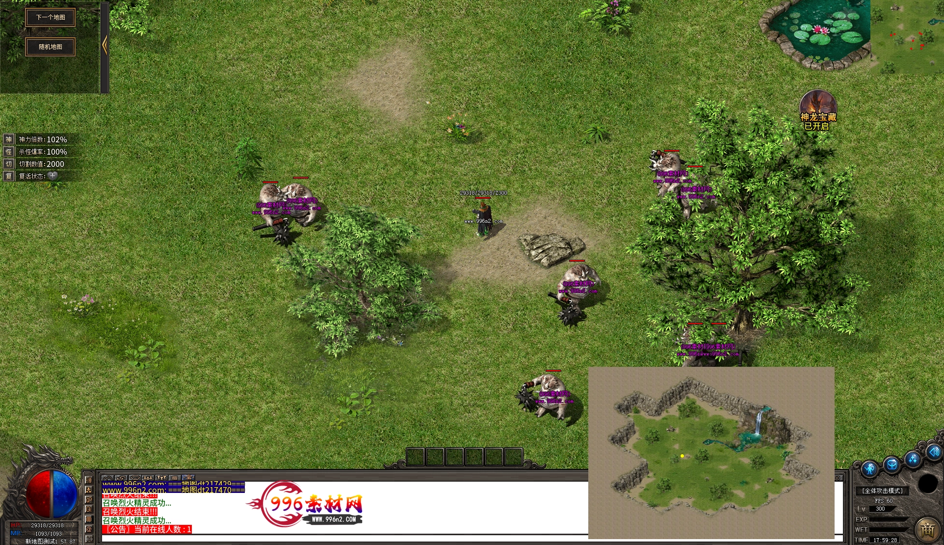 上传之前素材已经经过多次压缩. 实际的素材效果要比下面的图片强很多倍. 996素材下载后可以直接调用。跟版本的编号相同,修改一下就可以了, 大大节省了GM的用图片转换成996素材的时间 说明:本站所有素材全是从用996引擎游戏中调整好坐标后截图.看到是什么样的,安装到自己版本中就是什么样的.