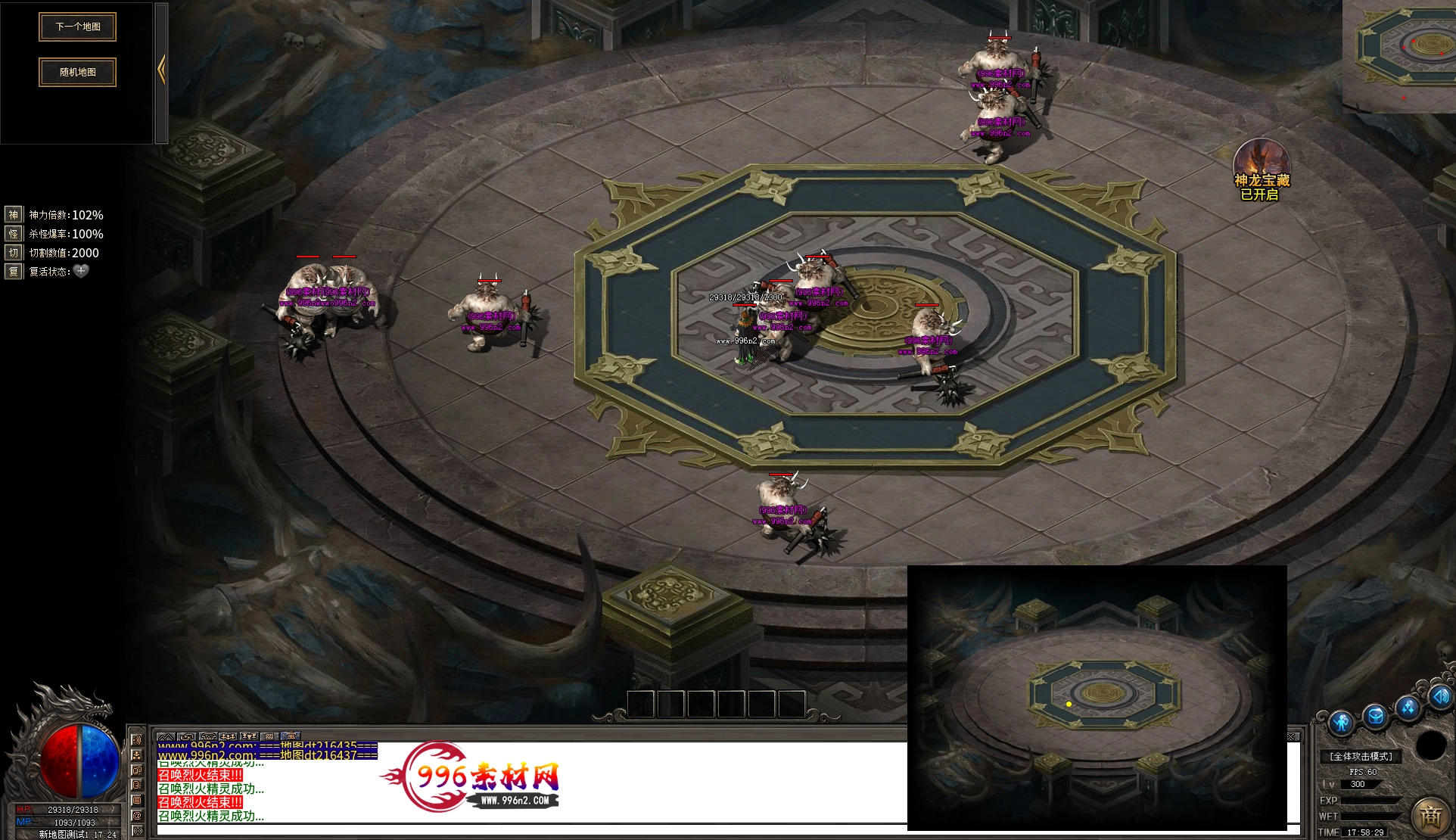 上传之前素材已经经过多次压缩. 实际的素材效果要比下面的图片强很多倍. 996素材下载后可以直接调用。跟版本的编号相同,修改一下就可以了, 大大节省了GM的用图片转换成996素材的时间 说明:本站所有素材全是从用996引擎游戏中调整好坐标后截图.看到是什么样的,安装到自己版本中就是什么样的.