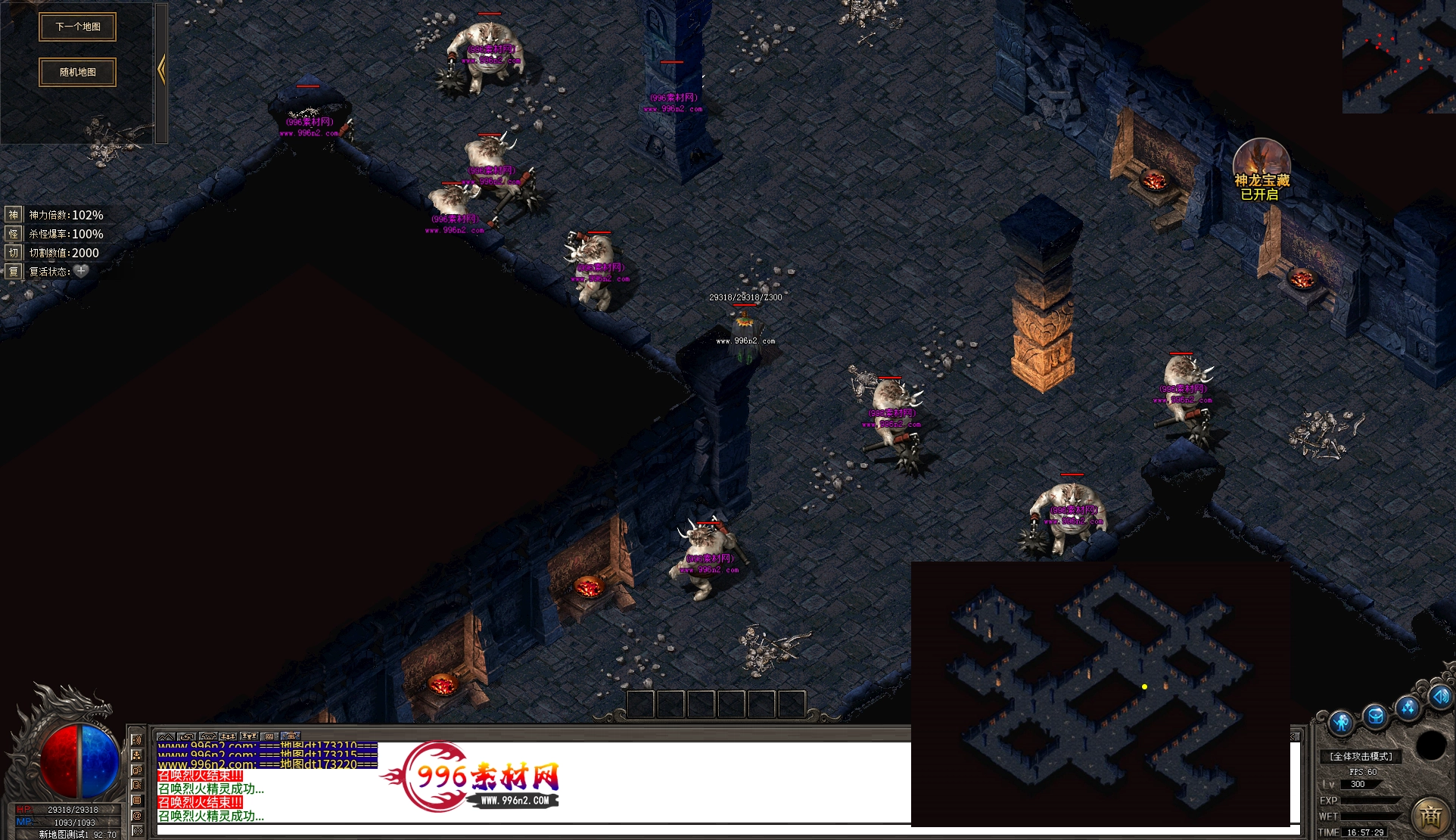 上传之前素材已经经过多次压缩. 实际的素材效果要比下面的图片强很多倍. 996素材下载后可以直接调用。跟版本的编号相同,修改一下就可以了, 大大节省了GM的用图片转换成996素材的时间 说明:本站所有素材全是从用996引擎游戏中调整好坐标后截图.看到是什么样的,安装到自己版本中就是什么样的.