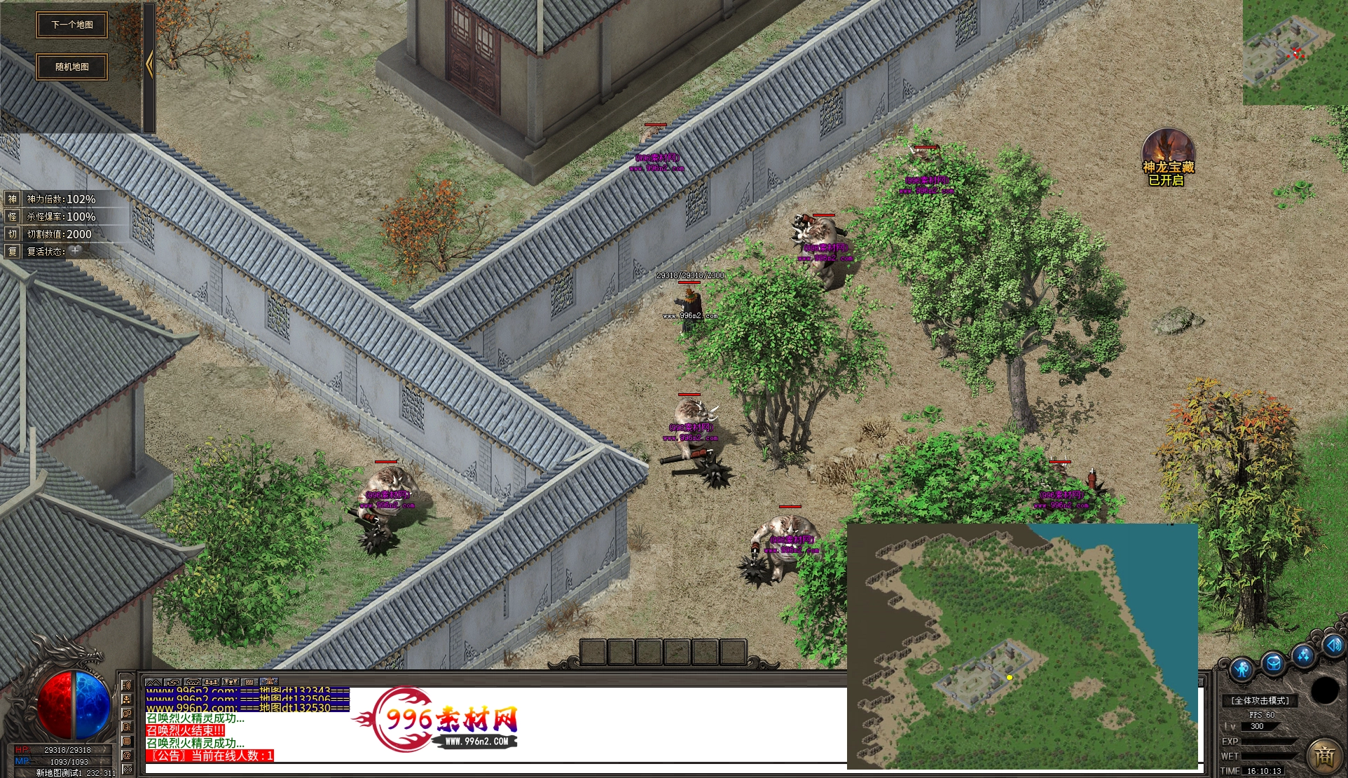 上传之前素材已经经过多次压缩. 实际的素材效果要比下面的图片强很多倍. 996素材下载后可以直接调用。跟版本的编号相同,修改一下就可以了, 大大节省了GM的用图片转换成996素材的时间 说明:本站所有素材全是从用996引擎游戏中调整好坐标后截图.看到是什么样的,安装到自己版本中就是什么样的.