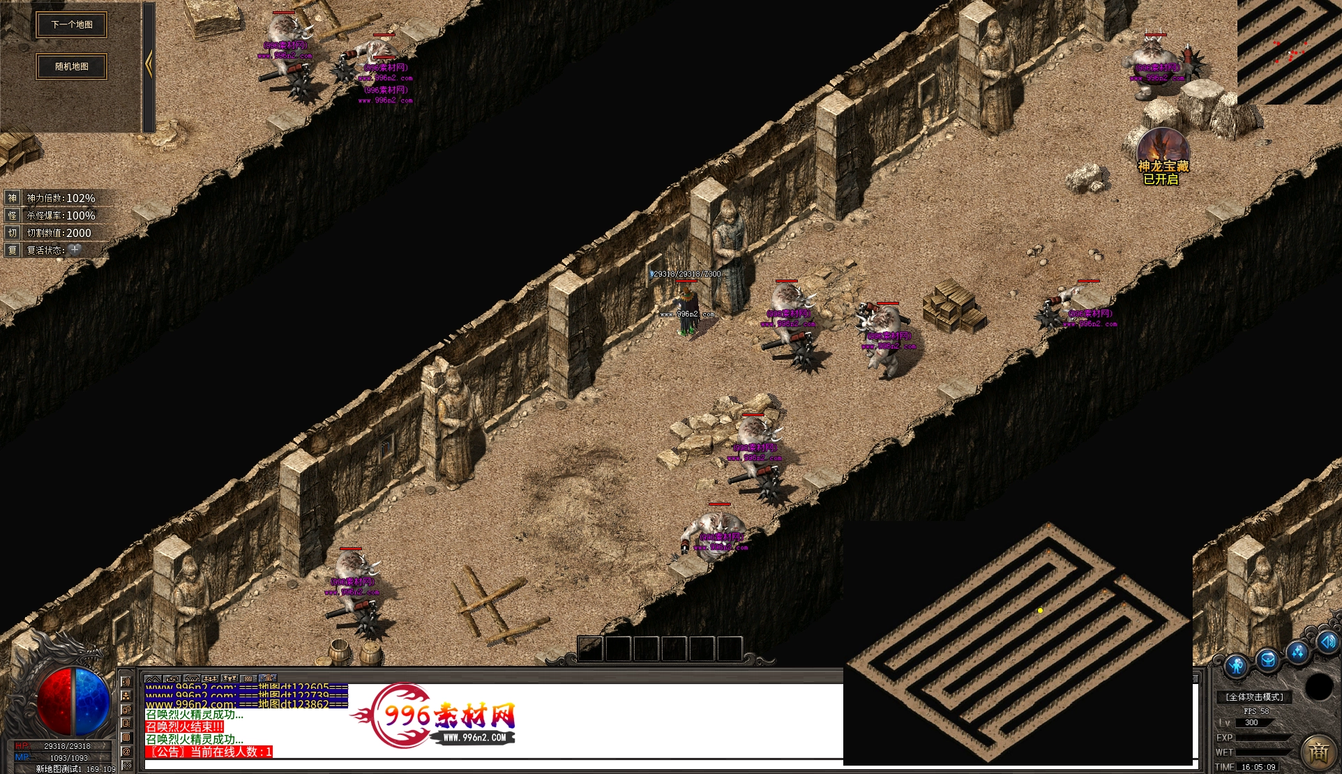 上传之前素材已经经过多次压缩. 实际的素材效果要比下面的图片强很多倍. 996素材下载后可以直接调用。跟版本的编号相同,修改一下就可以了, 大大节省了GM的用图片转换成996素材的时间 说明:本站所有素材全是从用996引擎游戏中调整好坐标后截图.看到是什么样的,安装到自己版本中就是什么样的.
