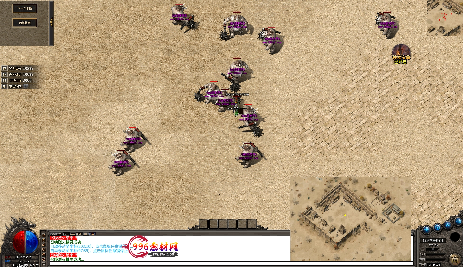上传之前素材已经经过多次压缩. 实际的素材效果要比下面的图片强很多倍. 996素材下载后可以直接调用。跟版本的编号相同,修改一下就可以了, 大大节省了GM的用图片转换成996素材的时间 说明:本站所有素材全是从用996引擎游戏中调整好坐标后截图.看到是什么样的,安装到自己版本中就是什么样的.