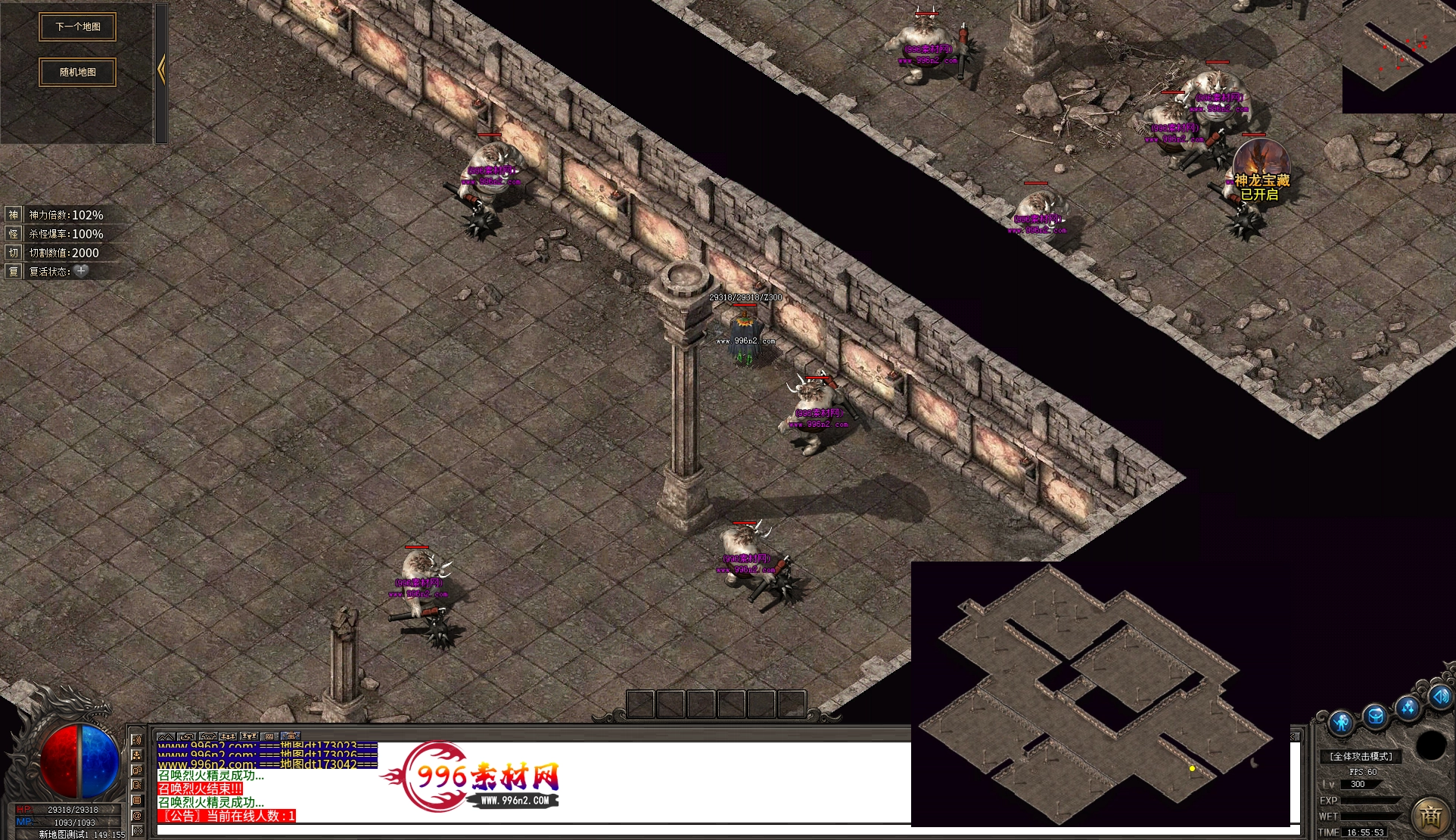 上传之前素材已经经过多次压缩. 实际的素材效果要比下面的图片强很多倍. 996素材下载后可以直接调用。跟版本的编号相同,修改一下就可以了, 大大节省了GM的用图片转换成996素材的时间 说明:本站所有素材全是从用996引擎游戏中调整好坐标后截图.看到是什么样的,安装到自己版本中就是什么样的.
