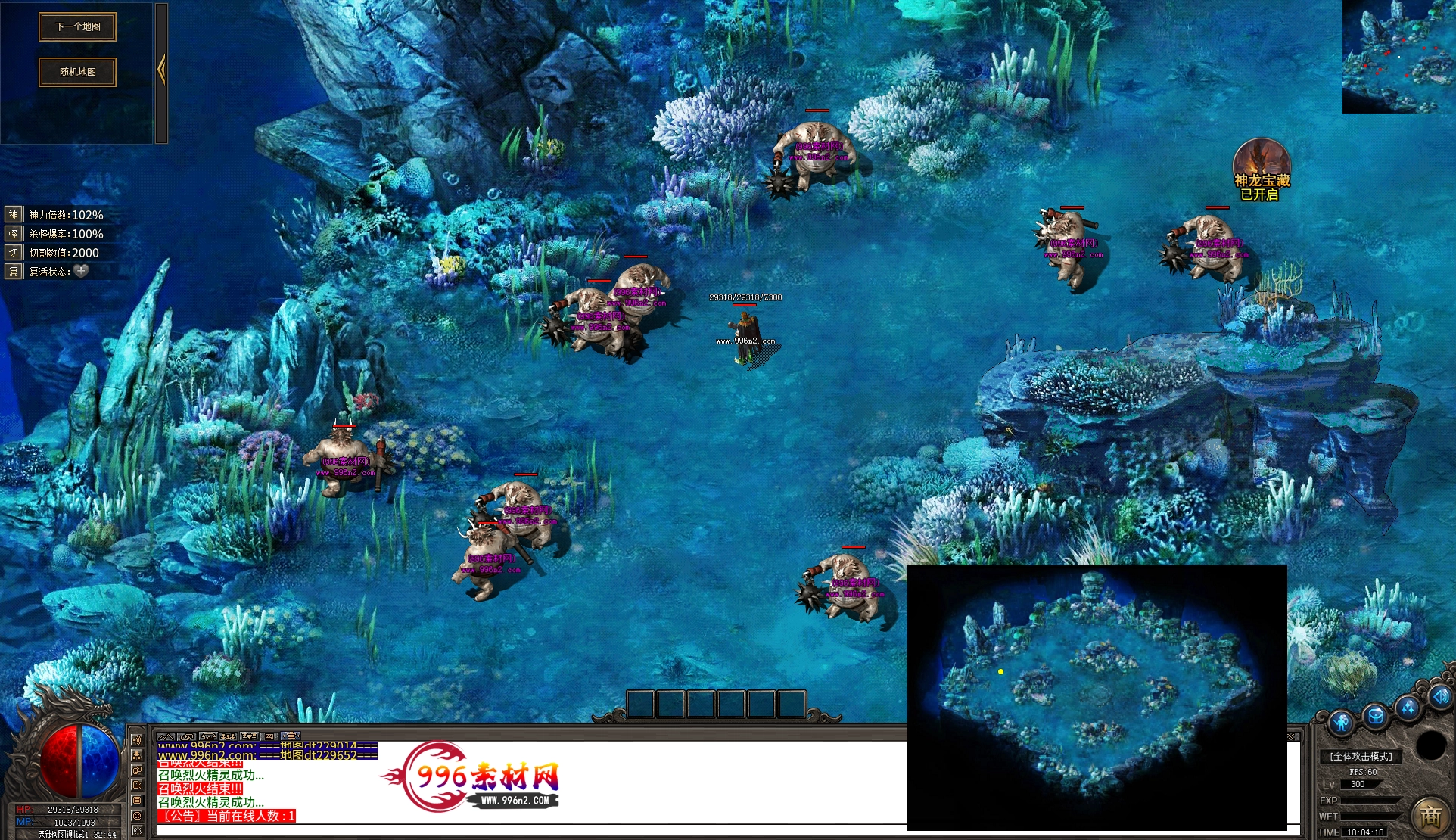 上传之前素材已经经过多次压缩. 实际的素材效果要比下面的图片强很多倍. 996素材下载后可以直接调用。跟版本的编号相同,修改一下就可以了, 大大节省了GM的用图片转换成996素材的时间 说明:本站所有素材全是从用996引擎游戏中调整好坐标后截图.看到是什么样的,安装到自己版本中就是什么样的.