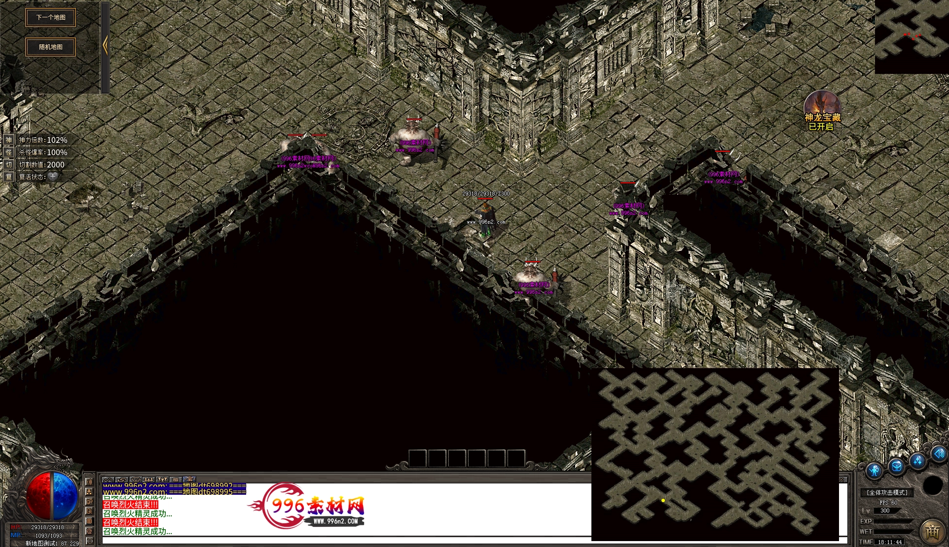 上传之前素材已经经过多次压缩. 实际的素材效果要比下面的图片强很多倍. 996素材下载后可以直接调用。跟版本的编号相同,修改一下就可以了, 大大节省了GM的用图片转换成996素材的时间 说明:本站所有素材全是从用996引擎游戏中调整好坐标后截图.看到是什么样的,安装到自己版本中就是什么样的.