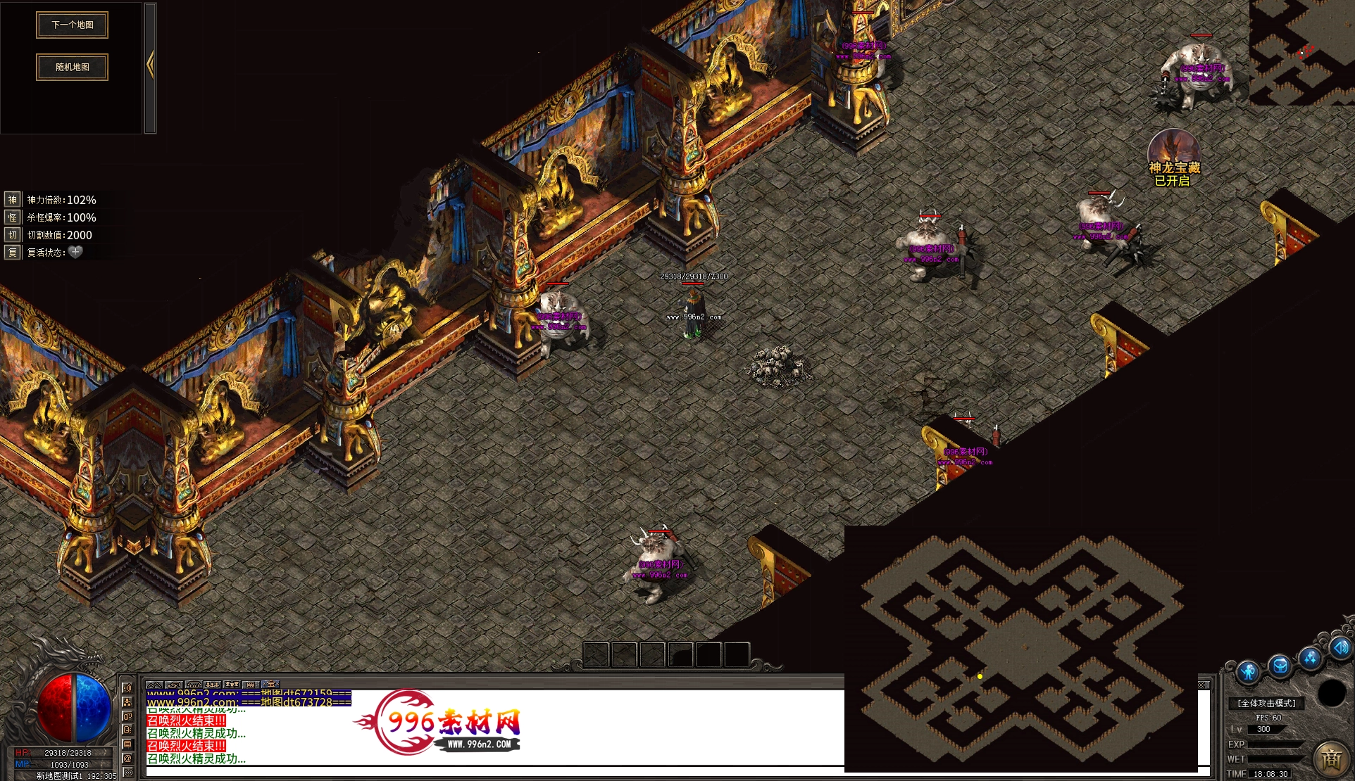 上传之前素材已经经过多次压缩. 实际的素材效果要比下面的图片强很多倍. 996素材下载后可以直接调用。跟版本的编号相同,修改一下就可以了, 大大节省了GM的用图片转换成996素材的时间 说明:本站所有素材全是从用996引擎游戏中调整好坐标后截图.看到是什么样的,安装到自己版本中就是什么样的.