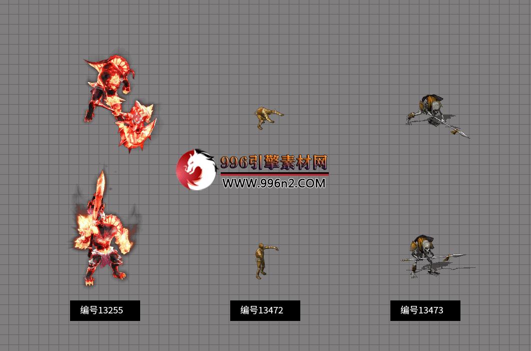 上传之前素材已经经过多次压缩. 实际的素材效果要比下面的图片强很多倍. 996素材下载后可以直接调用。跟版本的编号相同,修改一下就可以了, 大大节省了GM的用图片转换成996素材的时间 说明:本站所有素材全是从用996引擎游戏中调整好坐标后截图.看到是什么样的,安装到自己版本中就是什么样的.