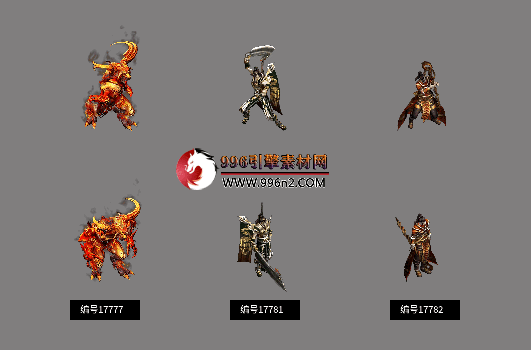 上传之前素材已经经过多次压缩. 实际的素材效果要比下面的图片强很多倍. 996素材下载后可以直接调用。跟版本的编号相同,修改一下就可以了, 大大节省了GM的用图片转换成996素材的时间 说明:本站所有素材全是从用996引擎游戏中调整好坐标后截图.看到是什么样的,安装到自己版本中就是什么样的.