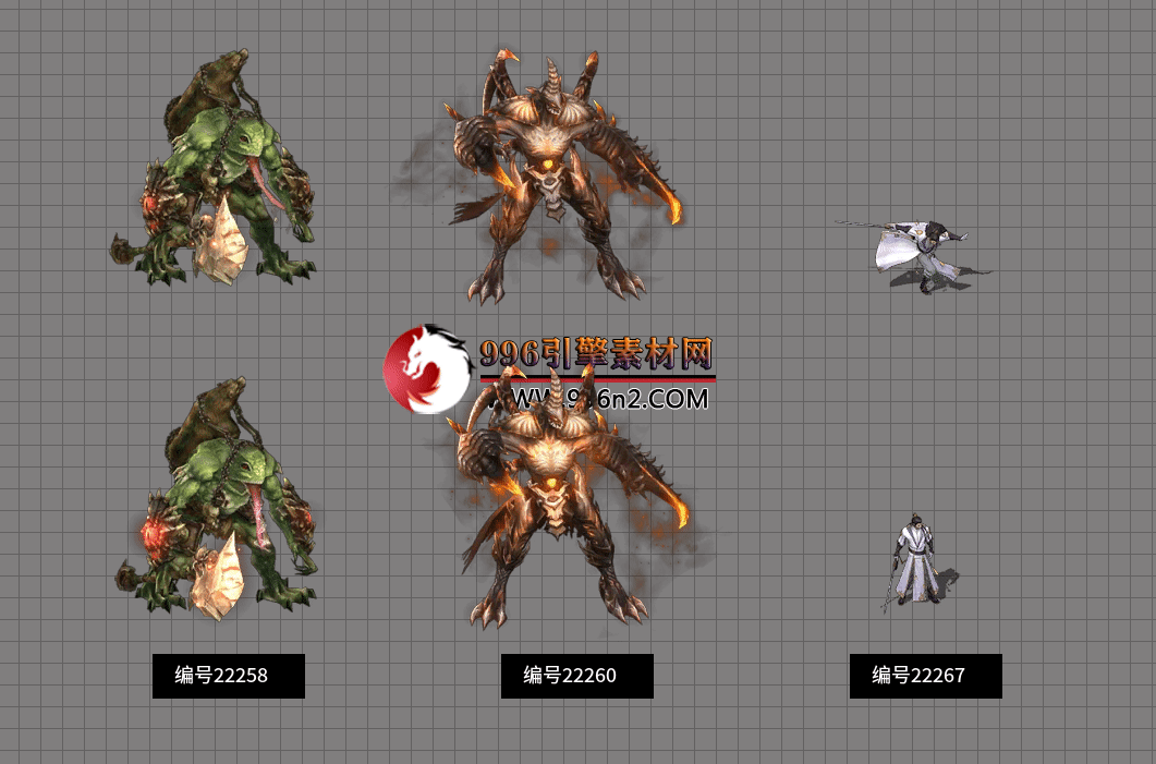 上传之前素材已经经过多次压缩. 实际的素材效果要比下面的图片强很多倍. 996素材下载后可以直接调用。跟版本的编号相同,修改一下就可以了, 大大节省了GM的用图片转换成996素材的时间 说明:本站所有素材全是从用996引擎游戏中调整好坐标后截图.看到是什么样的,安装到自己版本中就是什么样的.