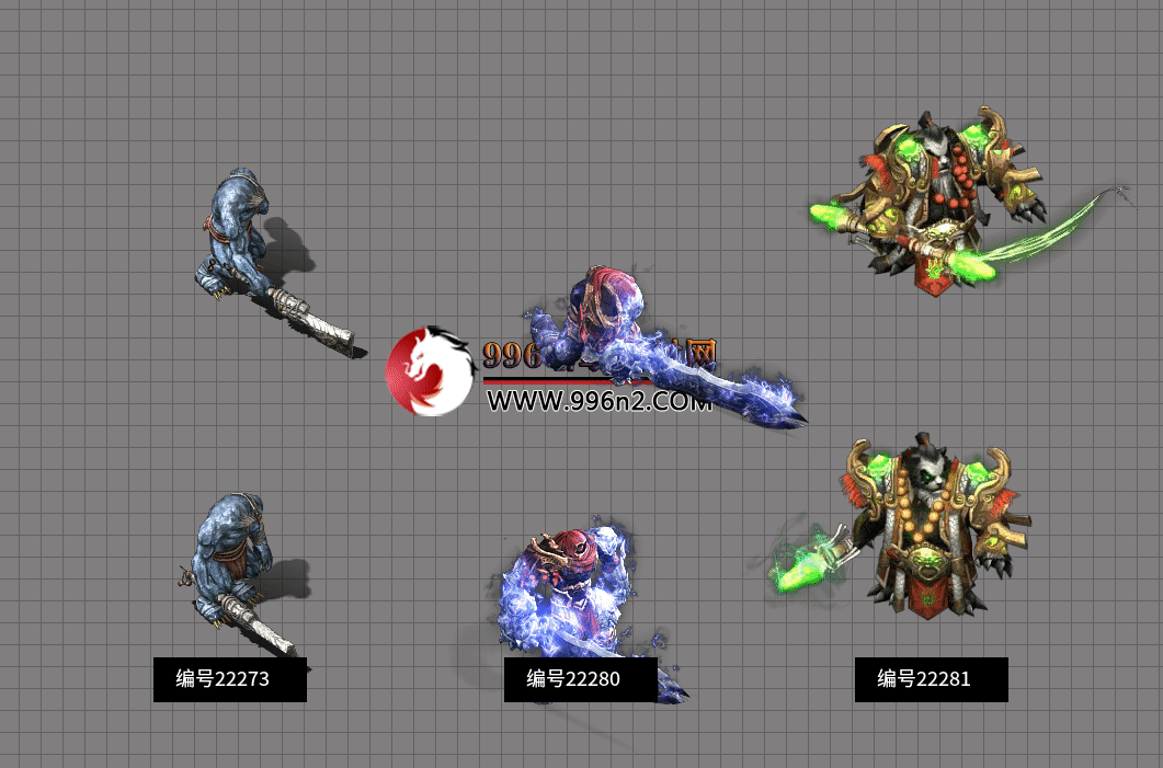 上传之前素材已经经过多次压缩. 实际的素材效果要比下面的图片强很多倍. 996素材下载后可以直接调用。跟版本的编号相同,修改一下就可以了, 大大节省了GM的用图片转换成996素材的时间 说明:本站所有素材全是从用996引擎游戏中调整好坐标后截图.看到是什么样的,安装到自己版本中就是什么样的.