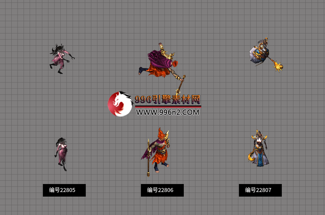 上传之前素材已经经过多次压缩. 实际的素材效果要比下面的图片强很多倍. 996素材下载后可以直接调用。跟版本的编号相同,修改一下就可以了, 大大节省了GM的用图片转换成996素材的时间 说明:本站所有素材全是从用996引擎游戏中调整好坐标后截图.看到是什么样的,安装到自己版本中就是什么样的.