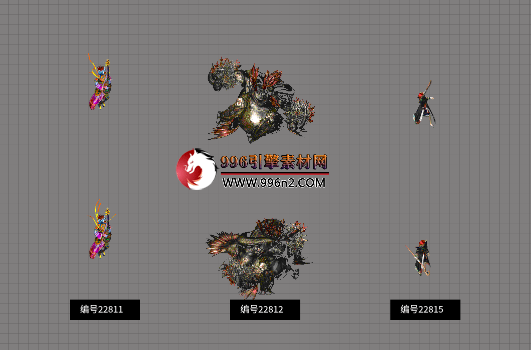 上传之前素材已经经过多次压缩. 实际的素材效果要比下面的图片强很多倍. 996素材下载后可以直接调用。跟版本的编号相同,修改一下就可以了, 大大节省了GM的用图片转换成996素材的时间 说明:本站所有素材全是从用996引擎游戏中调整好坐标后截图.看到是什么样的,安装到自己版本中就是什么样的.