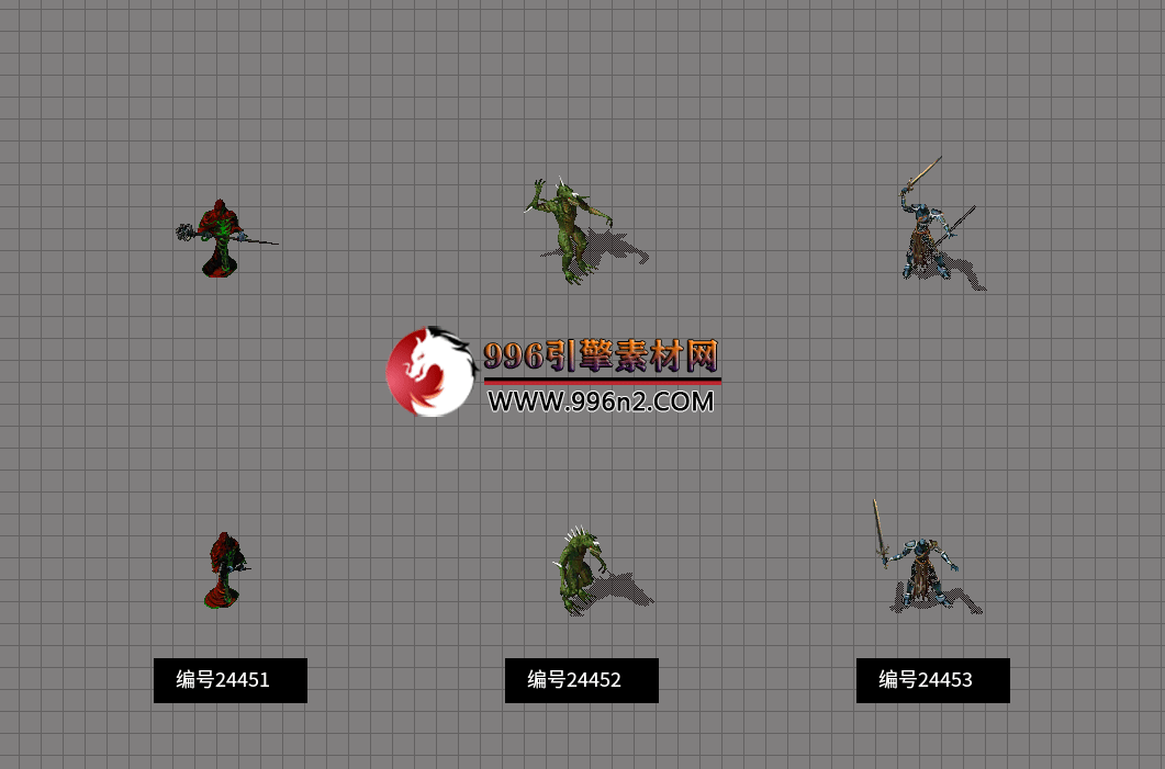 上传之前素材已经经过多次压缩. 实际的素材效果要比下面的图片强很多倍. 996素材下载后可以直接调用。跟版本的编号相同,修改一下就可以了, 大大节省了GM的用图片转换成996素材的时间 说明:本站所有素材全是从用996引擎游戏中调整好坐标后截图.看到是什么样的,安装到自己版本中就是什么样的.